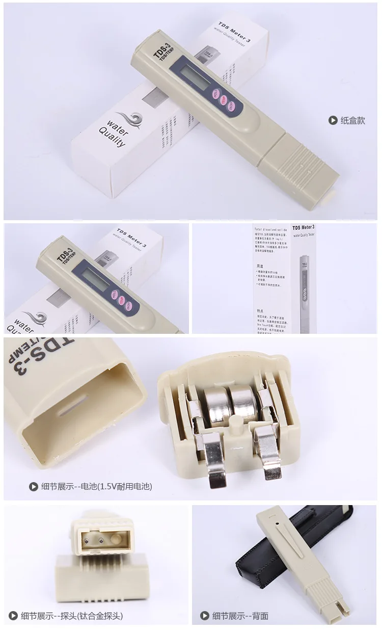 Высокое качество TDS измерительный фильтр палка Чистота воды ручка ЖК цифровой TDS3 Temp PPM тестер 8% скидка Продукт Особенности Измеритель TDS (ручка ppm, тестер нитратов, tds stick)-это недорогой и удобный цифровой инструмент, чтобы мгновенно проверить ваше общее качество воды. TDS = полное растворение твердых веществ, что является любой солью, металлом или минералом в воде. С помощью кнопки, TDS может сказать вам ваш общий уровень Чистота воды, который будет отображаться на экране в ppm (части на миллион). Чем ниже уровень TDS, тем чище вода, с 0 ppm является чистым H2O. TDS отлично подходит для проверки качества водопроводной воды, или знать, когда изменить фильтр. (Измеритель не проверяет биологические загрязнители.) TDS-отличный инструмент для питьевой воды, фильтрации и очистки воды, коллоидного серебра, гидропоники (проверьте питательные вещества), аквариумов, RO/DI систем, бассейнов и спа, коммерческое и промышленное применение и многое другое. TDS-это прочная модель, которая включает защитный чехол для переноски. Это самый популярный в мире портативный измеритель TDS для профессионалов в отрасли. Ts идеально подходит для коммерческого использования, в комплект входит чехол с зажимом для ремня, функция удержания: экономит измерения для удобного чтения и записи, высокоэффективный и точный благодаря передовой технологии микропроцессора Встроенный цифровой термометр, дисплей: большой и легко читаемый ЖК-экран. Цифровой измеритель воды AquaLutio TDS идеально подходит для тестирования приложений, таких как гидропоника и садоводство, бассейны и спа, аквариумные и рифовые резервуары, ионизаторы воды, фильтр воды. Питьевая вода и многое другое. Измеритель воды TDS идеально подходит для тестирования приложений идеальная питьевая вода, фильтр для воды, углеродные фильтры, пружинная вода, жесткая вода, средняя водопроводная вода, фильтр для воды холодильника, фильтр для воды, фильтр brita, обратный осмос, кухонный фильтр для очистки воды Описание продукта: 1. Цифровой измеритель воды AquaLutio TDS идеально подходит для тестирования приложений, таких как гидропоника и садоводство, бассейны и спа, аквариума и рифа, ионизаторы воды, фильтр воды. Питьевая вода и многое другое. 2. Диапазон измерения: 0-9990 ppm, 1 ppm разрешение, +/-2% точность считывания. 3. Кнопка температуры: тестовая температура воды, 31-200 градусов F, разрешение 1 F. Удерживайте 4. Функция: экономит измерения для удобного чтения и записи. 5. Функция автоматического выключения-выключает метр через 10 минут неиспользования для сохранения батарей. 6. Самый маленький и легкий измеритель TDS, доступный на рынке. Высокоэффективный и точный благодаря своей передовой технологии микропроцессора. (Цвет очень) 7. Источник питания: 2x1,5 в (кнопочный элемент LR44) (не входит в комплект) Посылка включения Шт. tds-метр с футляром-1 шт. ec-метр 1 х кожаный чехол Премиум 1 х Инструкция по эксплуатации Примечание: в комплект не входит аккумулятор
