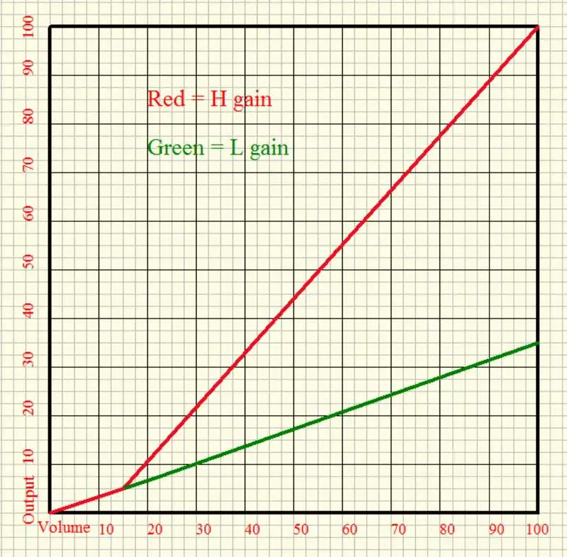 Благодаря нашей новой технологии управления коэффициентом усиления, нет встроенных переключателей, реле или параметров усилителя, которые меняются при переключении между приборами, поэтому качество звука точно такое же, как и у разных прибоев H и L. Пользователю нужно только выбрать соответствующий режим, чтобы сделать регулятор громкости более удобным для личной регулировки.