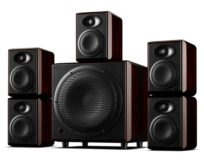 Пять H5 активный в виде книжной обложки мониторов плюс один H10 саб активный сабвуфер образуют 5,1-канал монитор фильма