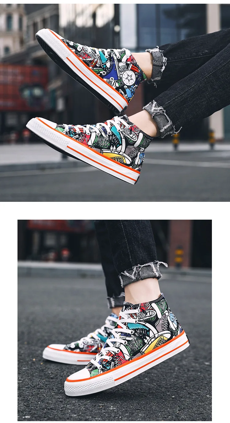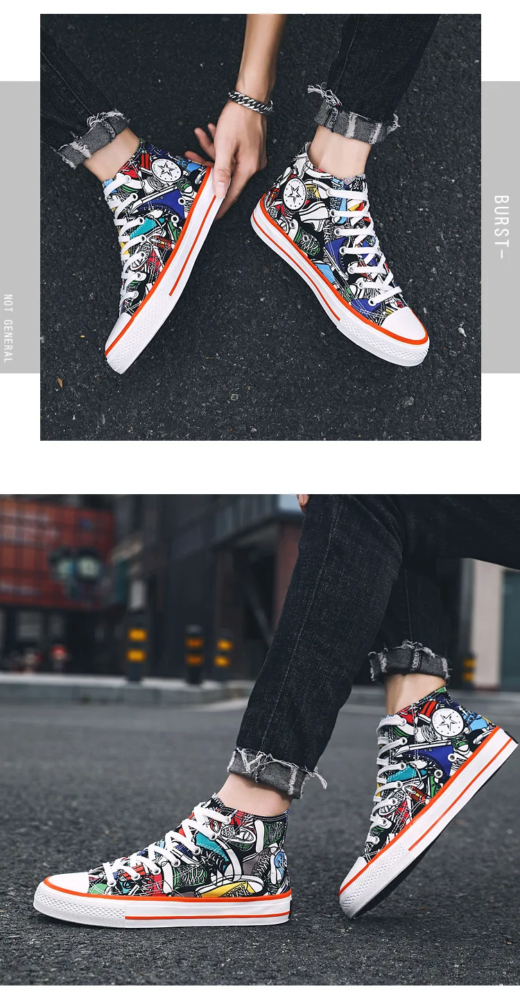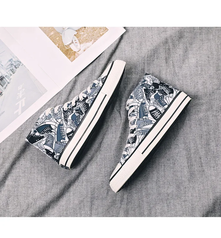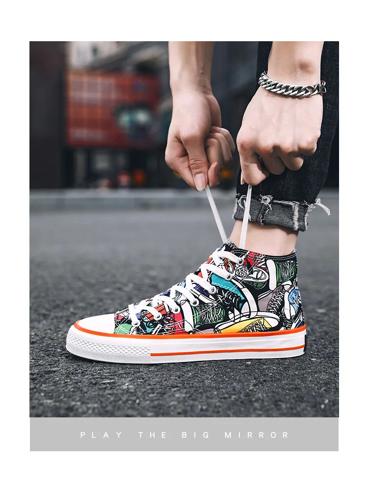 Новые летние парусиновые туфли с высоким берцем и граффити