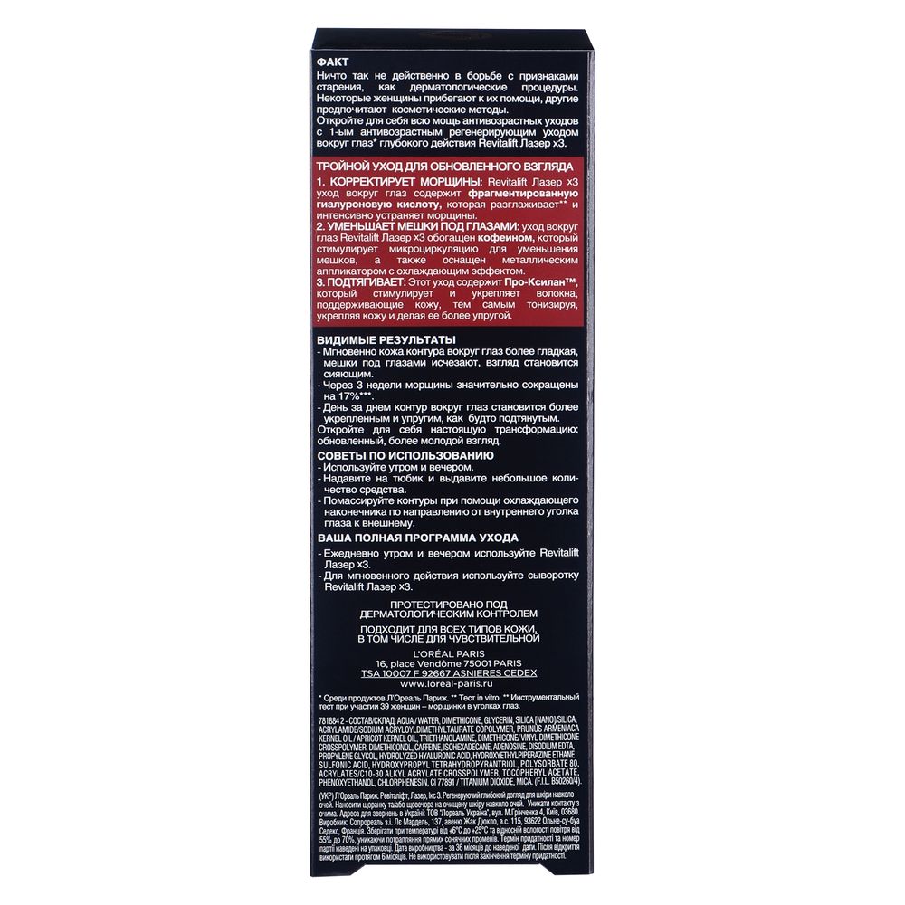 L'Oreal Paris Антивозрастной крем "Ревиталифт Лазер х3" против морщин для области вокруг глаз, 15 мл