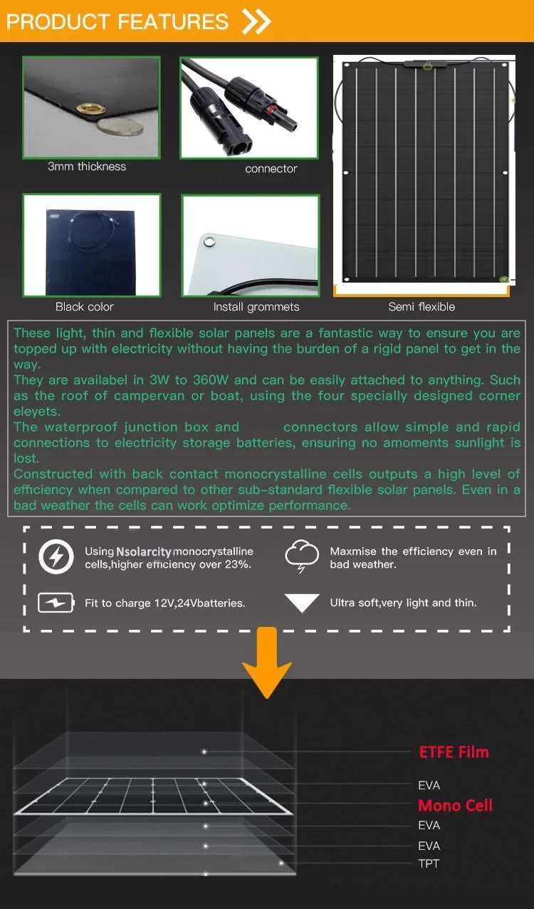 Новый дизайн тонкая пленка полугибкая солнечная панель ETFE RV Caravan 100 Вт солнечная панель монокристаллическая солнечная батарея водонепроницаемая для лодки