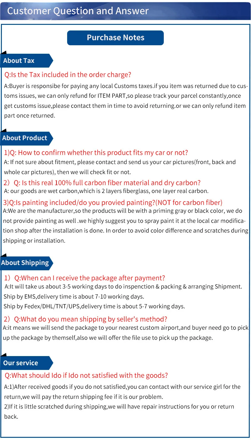 Углеродное волокно-это чрезвычайно прочный светильник, армированный волокном полимер, который содержит углеродное волокно s. Полимер чаще всего является эпоксидным, самым сильным и самым дорогим из этих добавок, углеродных нанотрубок, содержится в некоторых главным образом полимерных бейсбольных летучих мышей, автозапчастей и даже Гольф-клубах там, где экономически выгодно. Материал из углеродного волокна-это просто кусок ткани. Вы не можете сделать какую-либо форму без какой-либо поддержки. Мы используем подложку из стекловолокна для строительства скелета. Описание 1. Заднее крыло из углеродного волокна для BMW 2 серии F22 34 стиль 2.100% новый бренд 3. Прочный материал устойчив к УФ, воде, грязи, смазке, соли, легкой кислоте и маслу. 4. Светильник вес и долговечность 5. Это высококачественный материал CF. 6. Простая установка, отличная посадка и превосходный материал 7. Все наши продукты покрыты гелем и тщательно проверены перед отправкой Фитинг Подходит дляBMW 2 серии F22Смотрите так же другие товары: