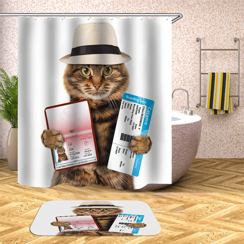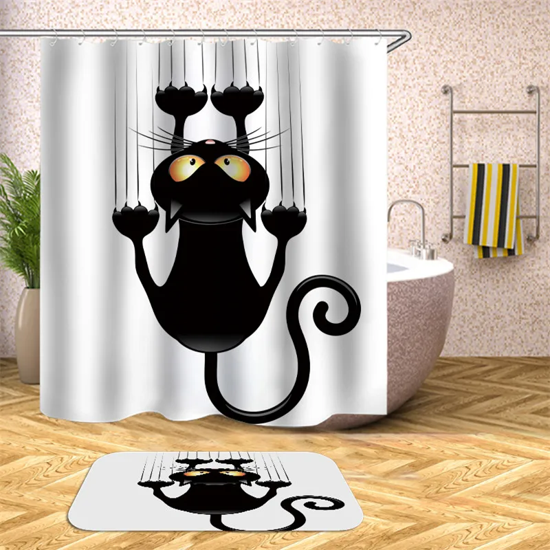 Занавески для ванной с кошкой, забавные, Звездные, водонепроницаемые, кошачьи занавески для душа, занавески для ванной