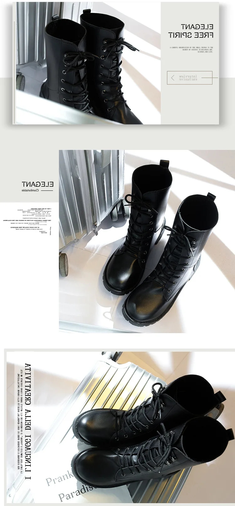 Женские мотоциклетные Ботильоны на танкетке черные кожаные кроссовки платформе