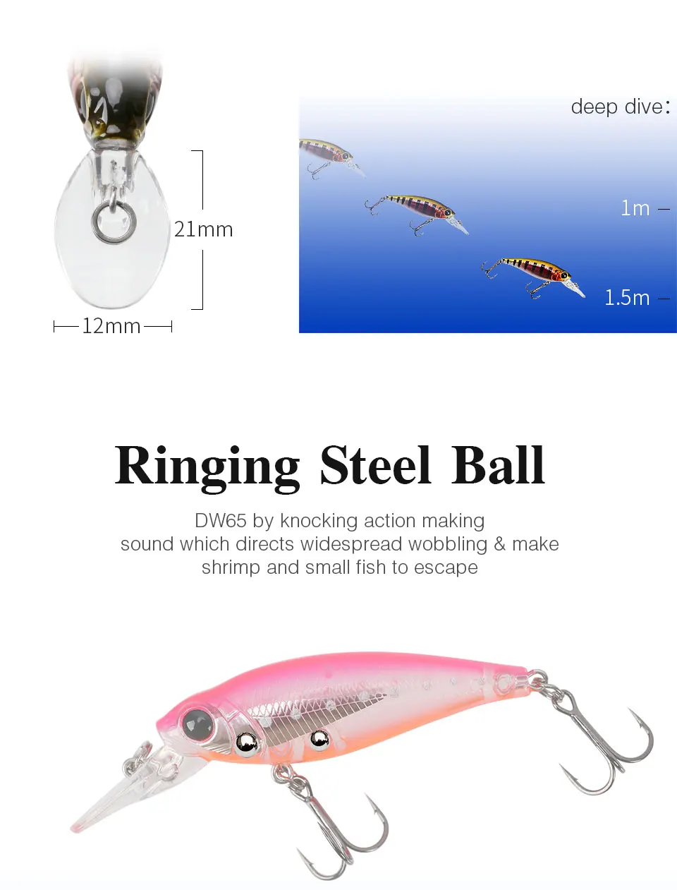 Особенности продукта: 1. Небольшой размер, длинный язык и стабильный в центре тяжести. Когда он входит в воду, он может вызвать большие колебания, которые нарушают поток воды. Когда движется плавательное действие, несколько стальных шариков вибрируют и издают звук, тем самым привлекая мишенью рыбу 2. Блестящий лазер окрашивает иллюзию бионических рыбных весов, которые могут преломлять светильник под разными углами, привлекая внимание целевой рыбы и светильник, который привлекает рыбу. Информация о продукте: Тип: жесткая Рыболовная Приманка Minnow Вес 5g Длина: 58 мм Цвета 8 цветов Действие: плавающая вода Глаз: 3D симулятор глаз Крючок: высококачественные черные никелевые крючки Посылка: индивидуальная упаковка