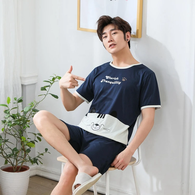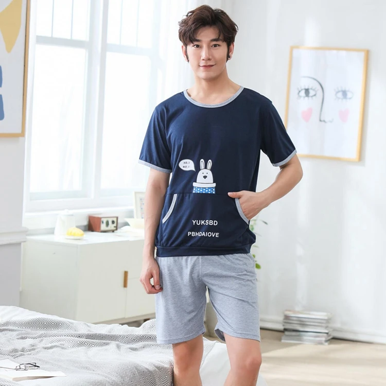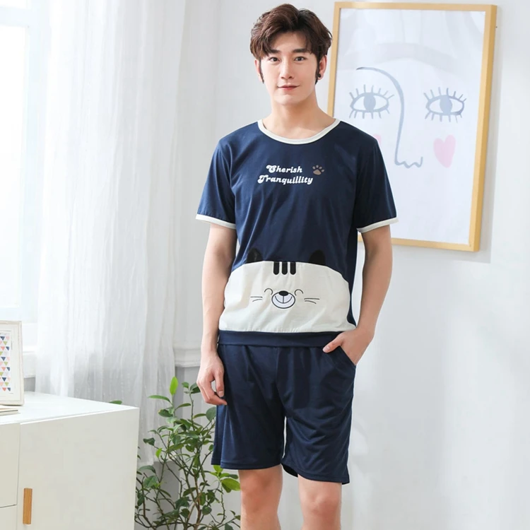 Ekouaer пижамные комплекты Мужская одежда для сна с коротким рукавом однотонная