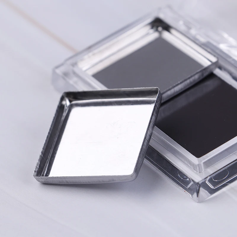 Пресс-порошок, румяна, блеск для губ и т. Д., наполненный металлической кастрюлей. Сковорода может быть наклеена автоматически.
