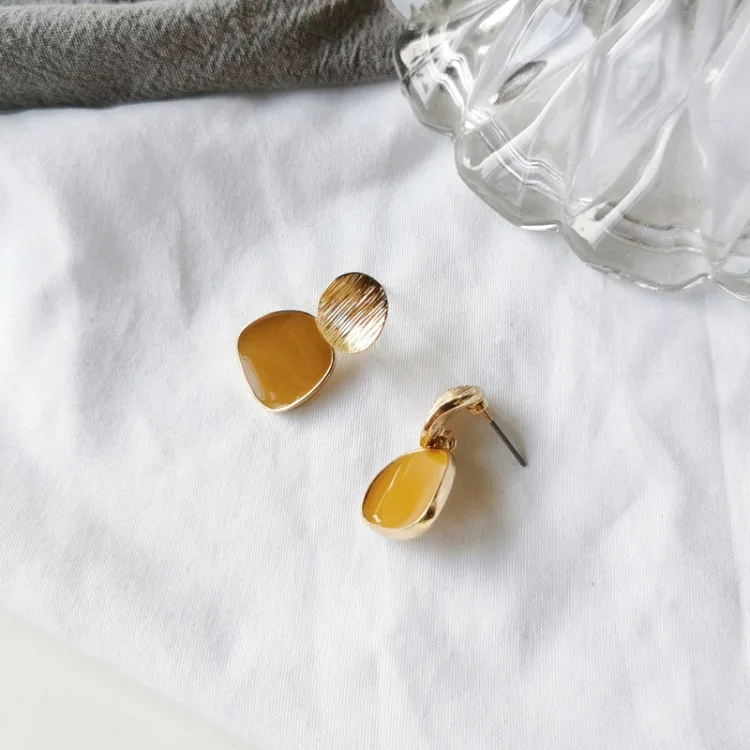 Чистые и свежие и сверкающие серьги женские южнокорейские неровные геометрические металлические вафли модные серьги-гвоздики