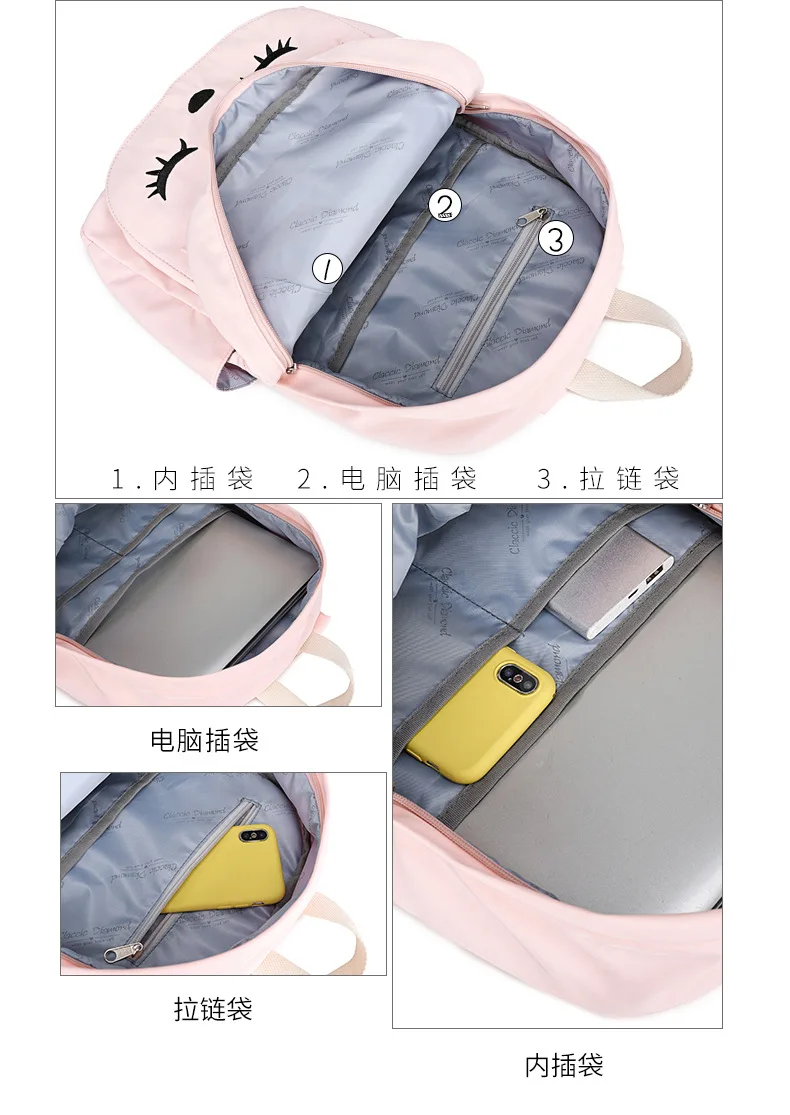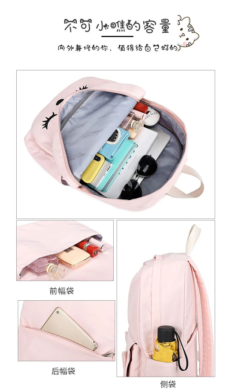 Корейский Kawaii женский рюкзак с розовым котом, водонепроницаемый дорожный рюкзак Mochila Feminina, милый рюкзак для ноутбука, нейлоновые школьные сумки