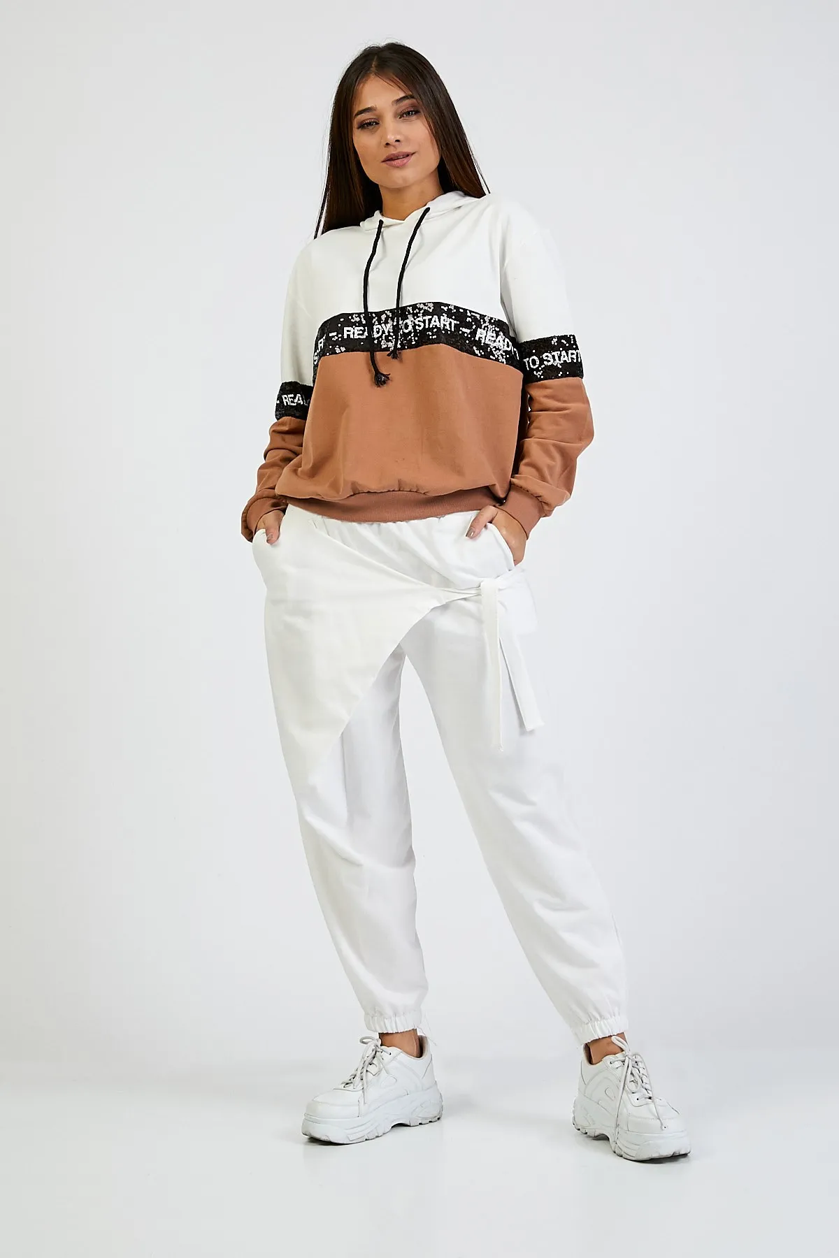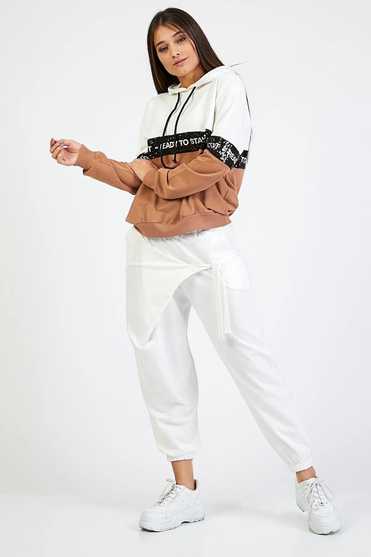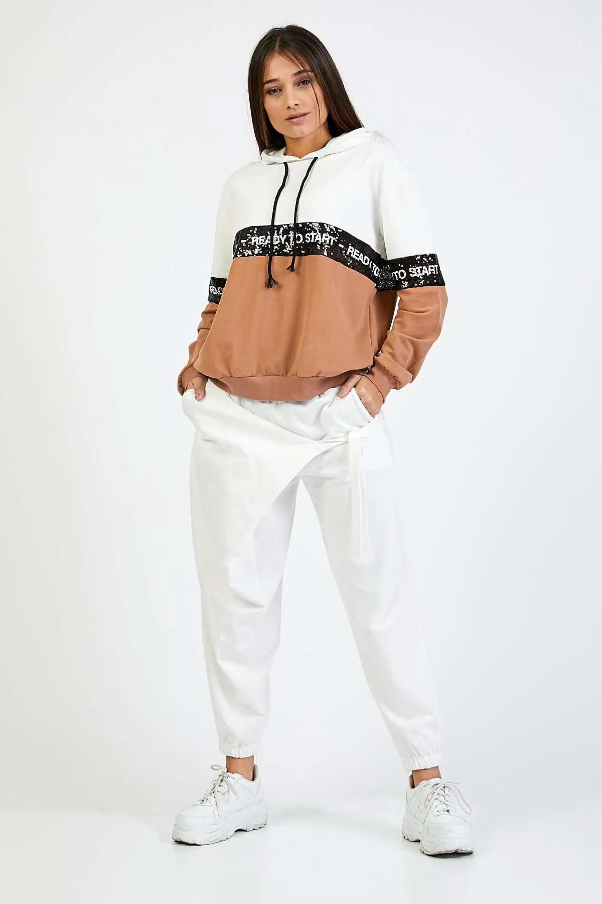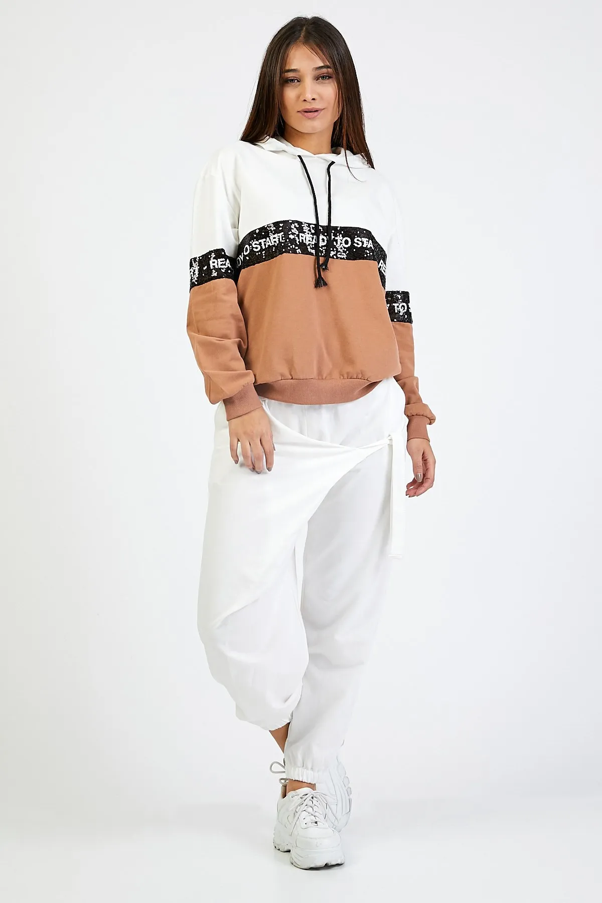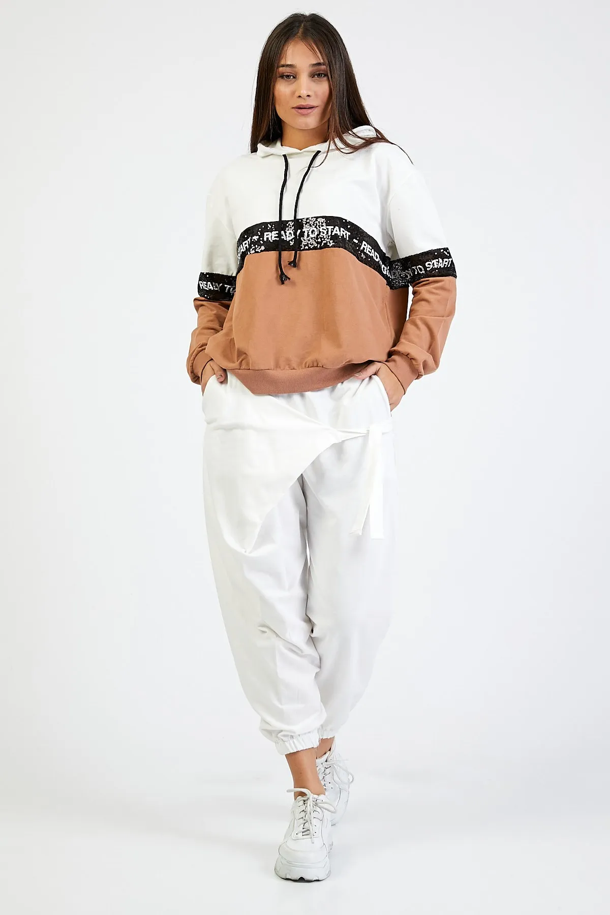 D'amore Женская 36,38,40 размер 100% хлопок Повседневная расшитая блестками толстовка с капюшоном коричневого цвета
