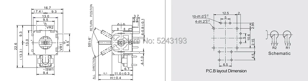 Для PS4 замена 10K B10K 3D PS игра Рокер Джойстик Потенциометр ручка с переключателем B103 + шляпа 16*16