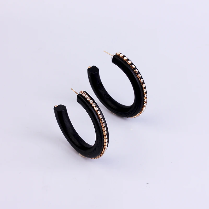 Женские и мужские Кристальные серьги с фианитом круглые кольца черным цветком