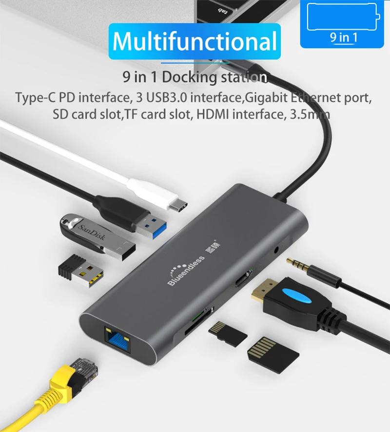 Адаптер Type C для мобильного телефона Pro Hub USB 3 1 быстрой зарядки 4K HDMI 0 и 5 мм разъем