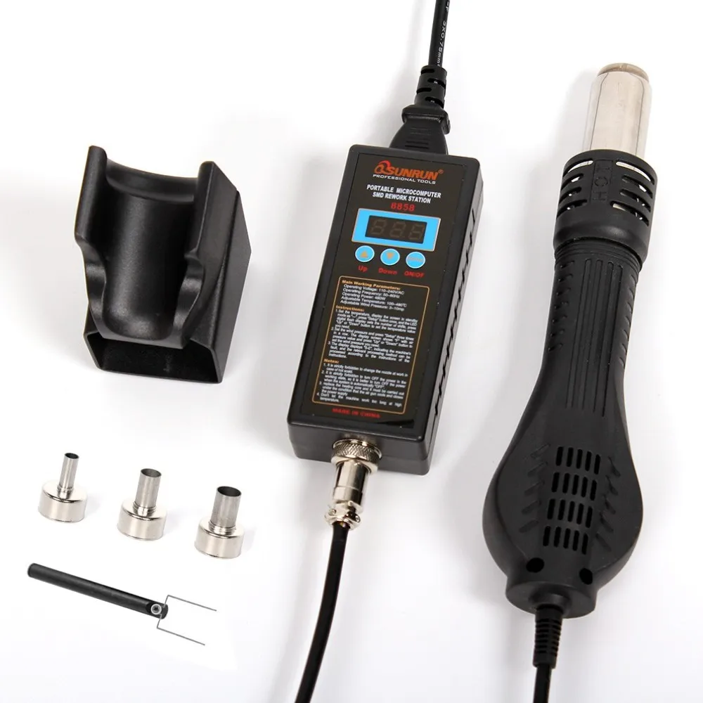 1. Удобный портативный и цифровой светодиодный дисплей. 2. Управление микрокомпьютером, быстрое прогревание. 3. Регулировка потока воздуха и контроля температуры клавиатуры. 4. Ознакомьтесь с инструкциями, включенными в три вида насадок (большой, средний и маленький), запасные части. 5. Заменит деталь, если значение сопротивления будет неправильным. 6. Когда температура ниже 70 градусов, можно автоматически прекратить вращение. 7. Высокое качество сопротивления, хорошее для длительного срока службы 8. Безопасный припой QFP , PLCC , BGA и другие чувствительные к температурам компоненты. 9. Интеллектуальное обнаружение и крутые характеристики воздушного потока. 10. Зеленые линии и высококачественный силиконовый корпус хорошо нагреваются для продления срока службы и экономии энергии.