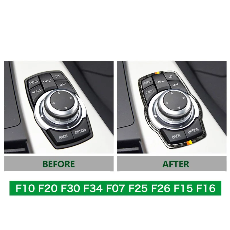 Автомобильный чехол из углеродного волокна для BMW, мультимедийная кнопка, рамка, Накладка для F10, F20, F30, F34, F07, F25, F26, F15, F16, аксессуары Материал: углеродное волокно + эпоксидный клей Количество: 1 шт Совместимая модель: F10 F20 F30 F34 F07 F25 F26 F15 F16
