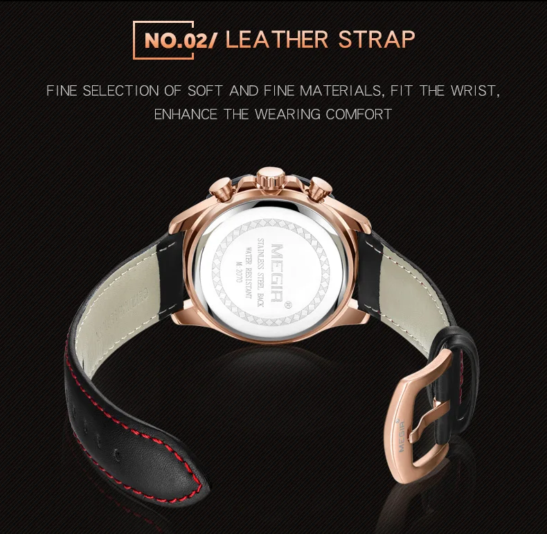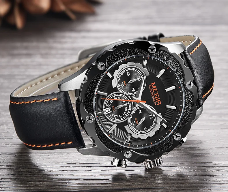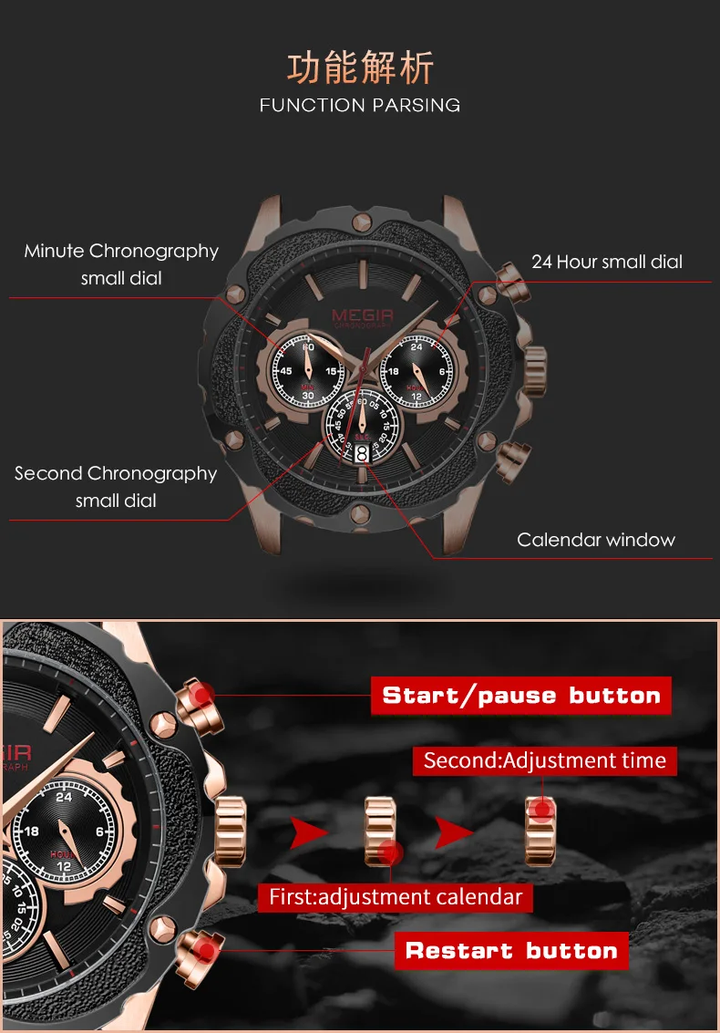 MEGIR мужские спортивные часы с хронографом, силиконовый ремешок, кварцевые армейские военные часы, мужские часы, лучший бренд, Роскошные мужские часы Особенности: -Оригинальные часы MEGIR из официального магазина MEGIR; -100% новый с биркой и качественным квартаном; -Водонепроницаемость 3 АТМ (вы можете использовать его во время дождя и мытья рук, не поддерживает горячую воду и плавание); -С хронографом (секундомером) и светящейся функцией, с отображением даты; -MEGIR Креативный дизайн и высококачественные материалы. Технические характеристики: -Бренд: MEGIR -Модель: 2053 -Товар: спортивные часы -Тип часов: кварцевые часы/мужские часы/Relogio Masculino -Функция: хронограф, секундомер, светящийся, календарь (дата), водонепроницаемый -Материал корпуса: сплав -Материал ремешка: силикон Параметры: -Чехол Диаметр: около 46 мм -Чехол Толщина: около 14 мм -Длина ремешка (максимальная носимая длина): около 215 мм -Ширина ремешка: около 25 мм Посылка включает в себя: -Часы Megir-1 шт. -1 оригинальная коробка для часов Megir -1 Руководство пользователя с гарантийным талоном