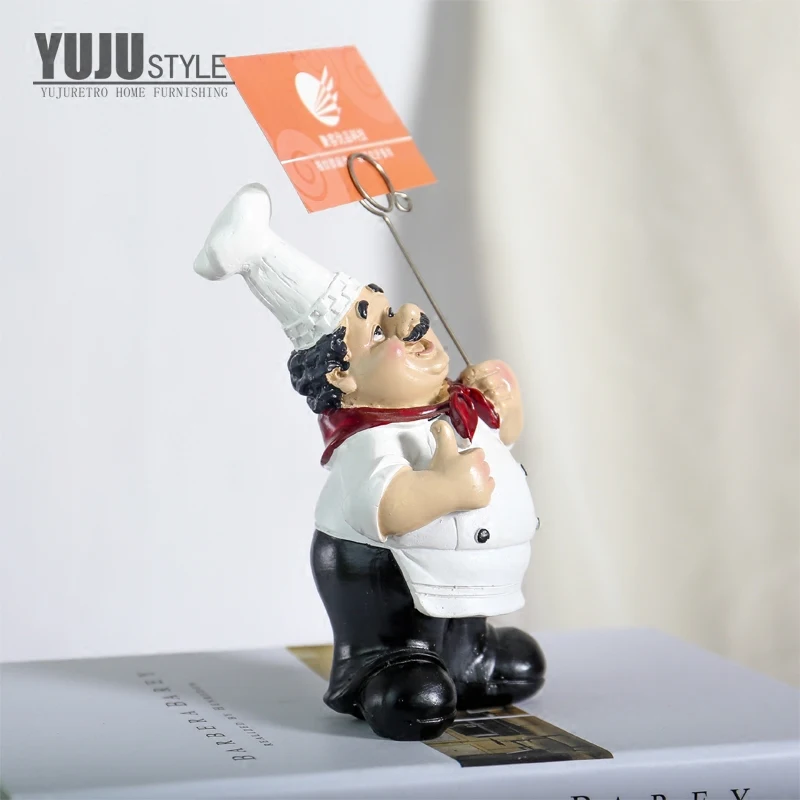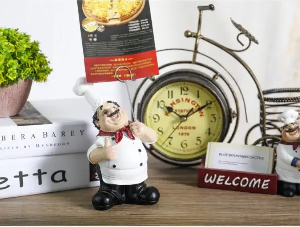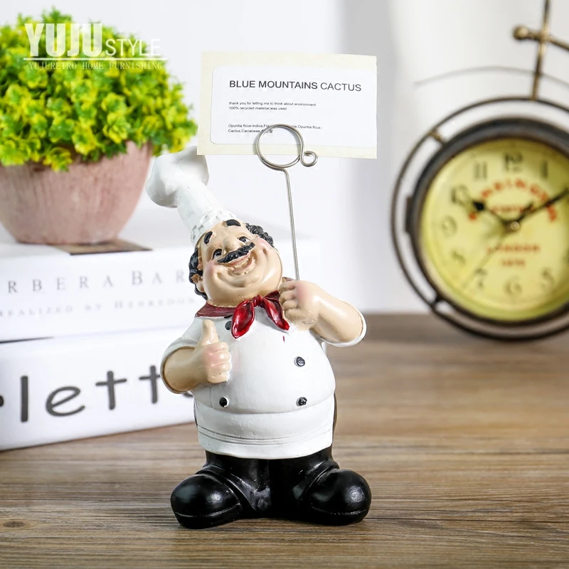 Скидка 3% на покупку 2 или более Полимерный деловой держатель для карт, фигурки шеф-повара, креативные настольные украшения, ресторанная стойка, десертный практический орнамент Размер: 10*9*17 см/3,9*3,5*6,7 дюймов Цвет: белый Стиль: держатель для карт, кухонный декор для ресторана, Европейский орнамент Материал: смола Использование в: дома, магазинах, ресторанах Посылка в комплекте: кухонный держатель для карт фигурки * 1 шт.