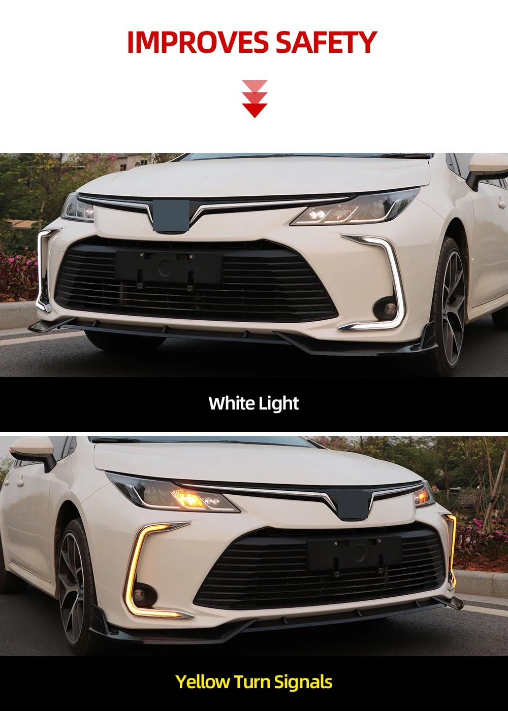Белый и желтый имеют две функции: DRL и поворотники.