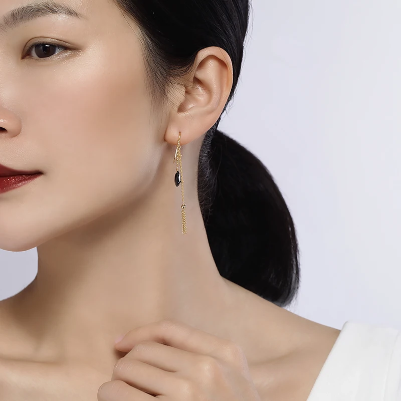 Название бренда: Piara Тип Драгоценного Камня: черный оникс В форме драгоценного камня: капля Размер драгоценного камня: 9x6 мм Длина изделия: 6x62 мм Тип покрытия: 18K позолоченный Упаковка: Подарочная коробка