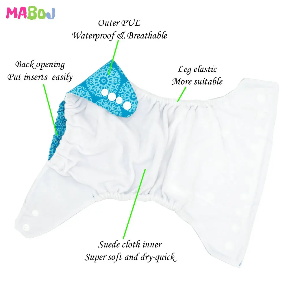 Один размер карманных подгузников подходит для 7-38 фунтов (3-17 кг) с 3x3 подъемными защелками, чтобы настроить для идеальной посадки.