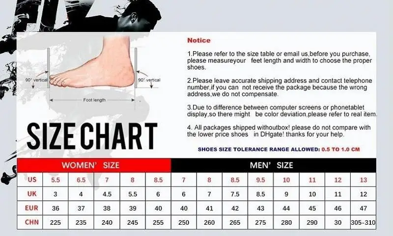 Описание продукта размеров, включая различные SKUs' разных размеров.