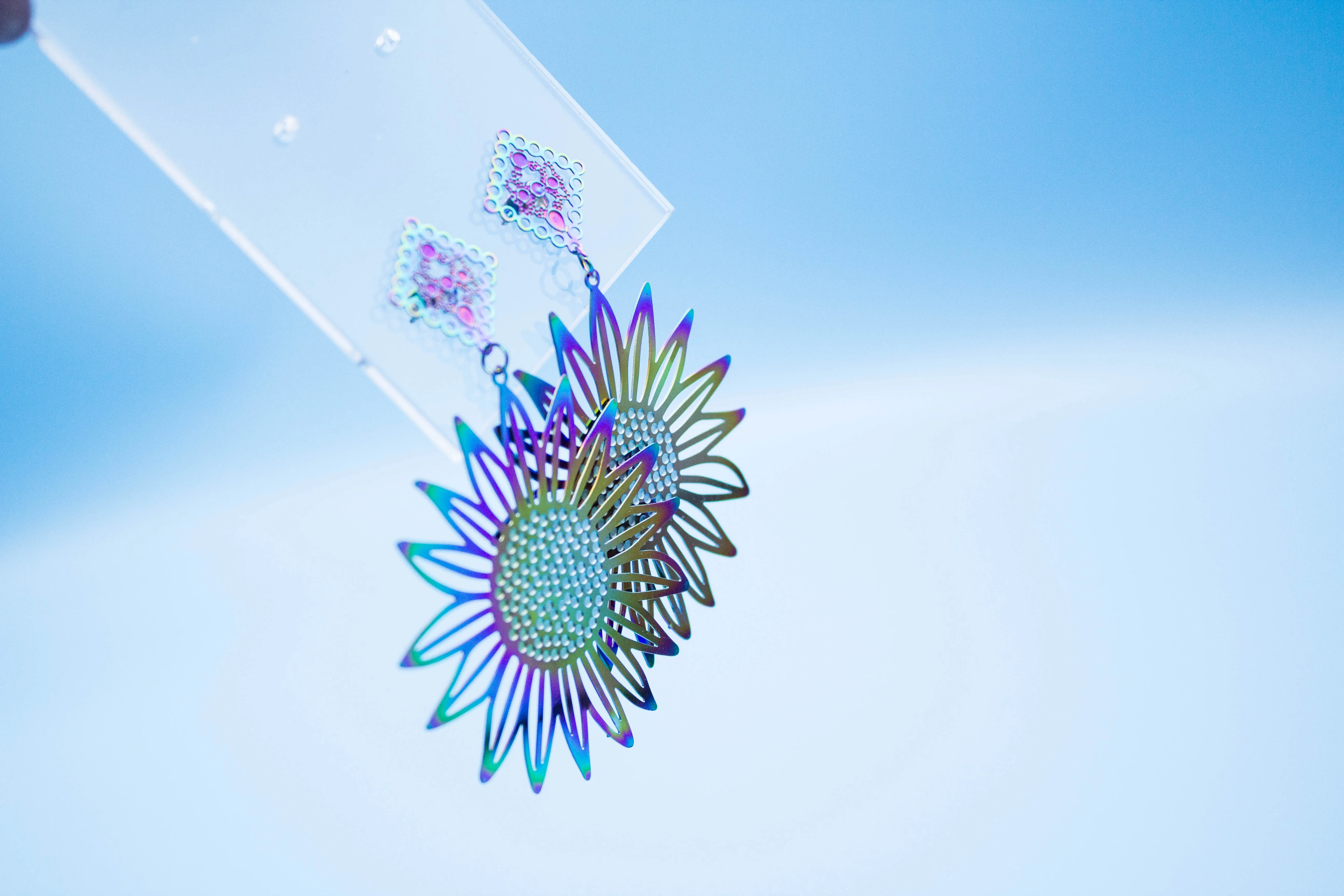 Эти многоцветные большие серьги имеют градиентный эффект фиолетово-сине-зеленого цвета. Так уникально, потому что это новый модный стиль 2020 года. Они несут в себе весну и лето, что показывает персональный charater того, кто носит их.
