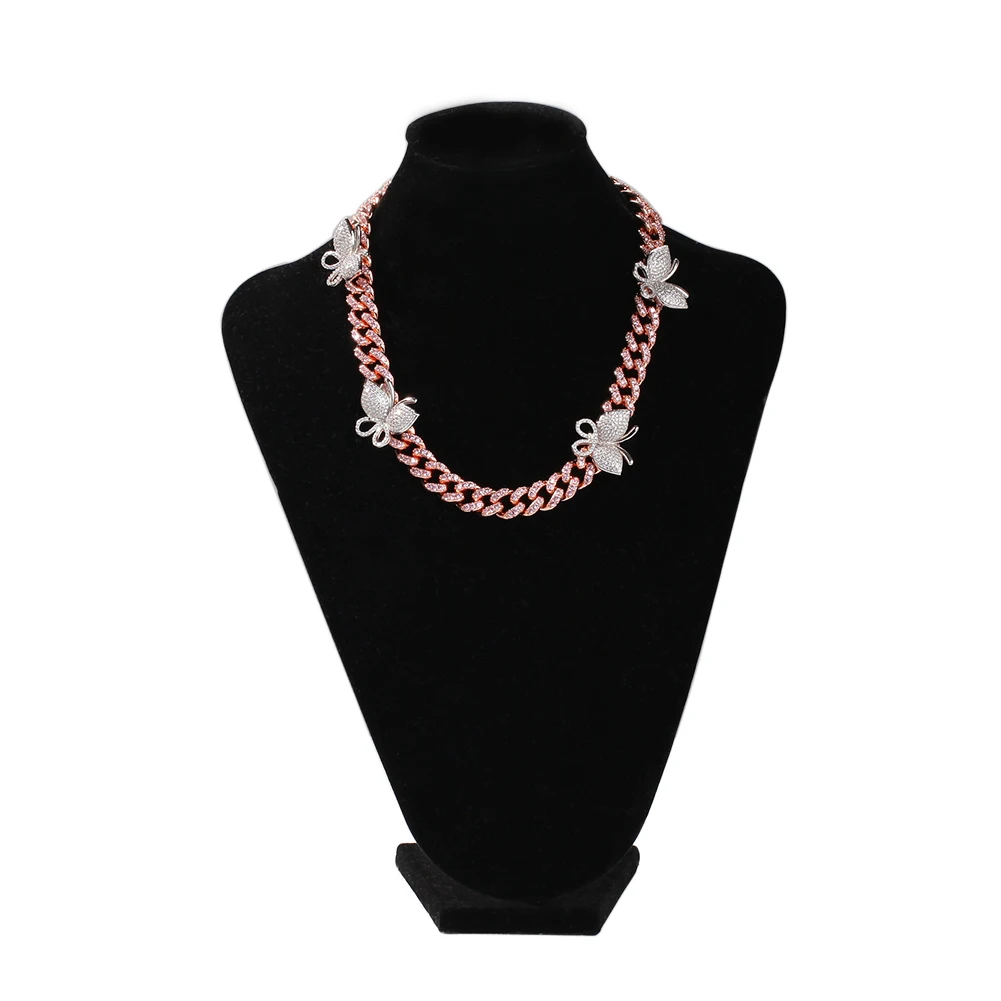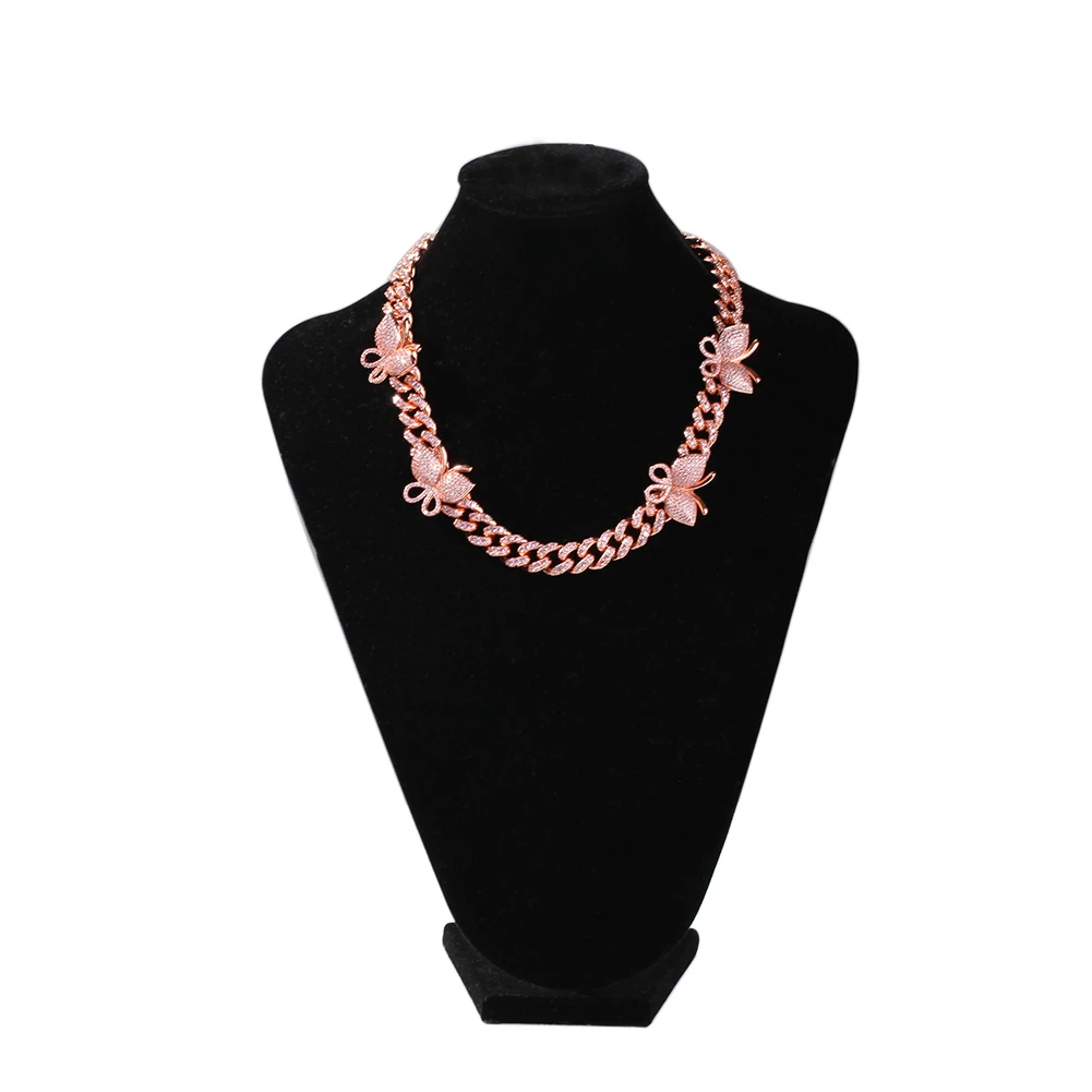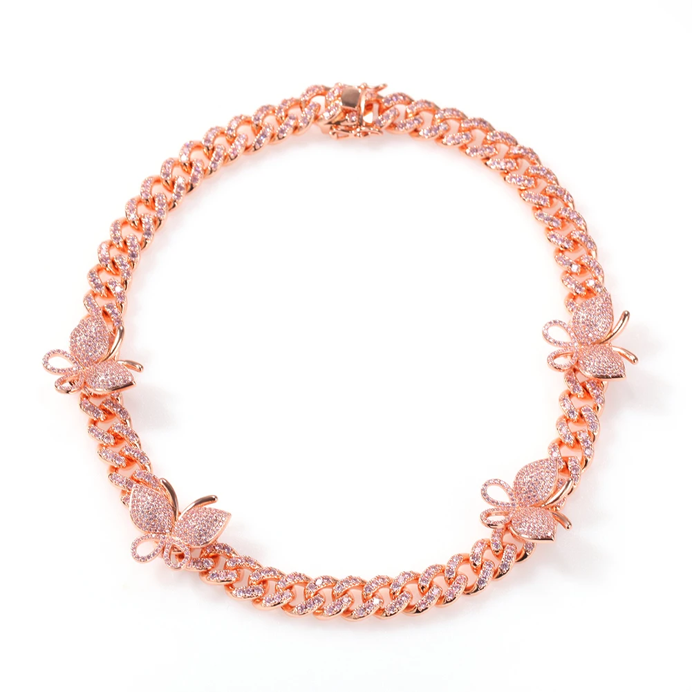 12 мм кубинское ожерелье с розовой бабочкой цепочка из розового золота CZ роскошное ожерелье в стиле хип-хоп ювелирные изделия шикарные украшения для мужчин и женщин подарок