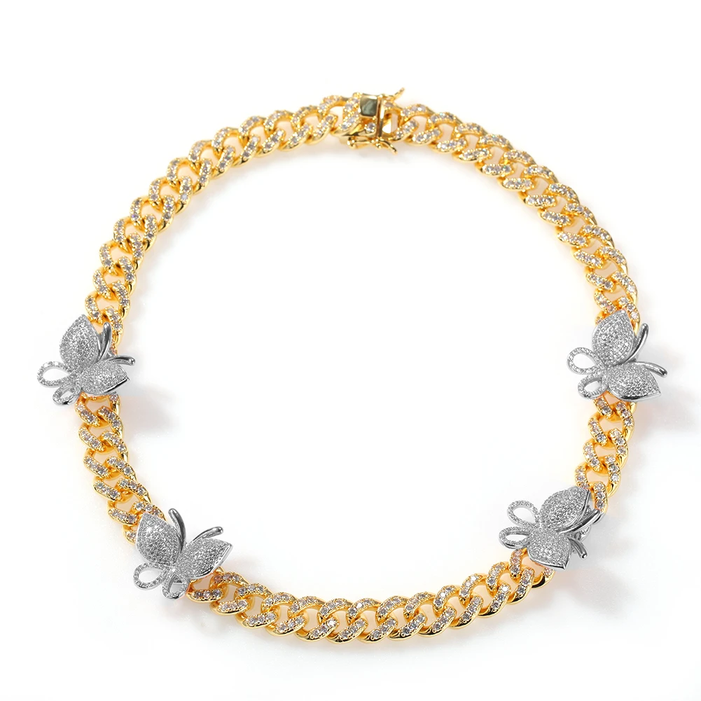 Белая Золотая розовая медная теннисная цепочка 5 мм Маленькая цепочка-бабочка модное роскошное ожерелье со льдом в стиле хип-хоп женское ювелирное изделие 2020