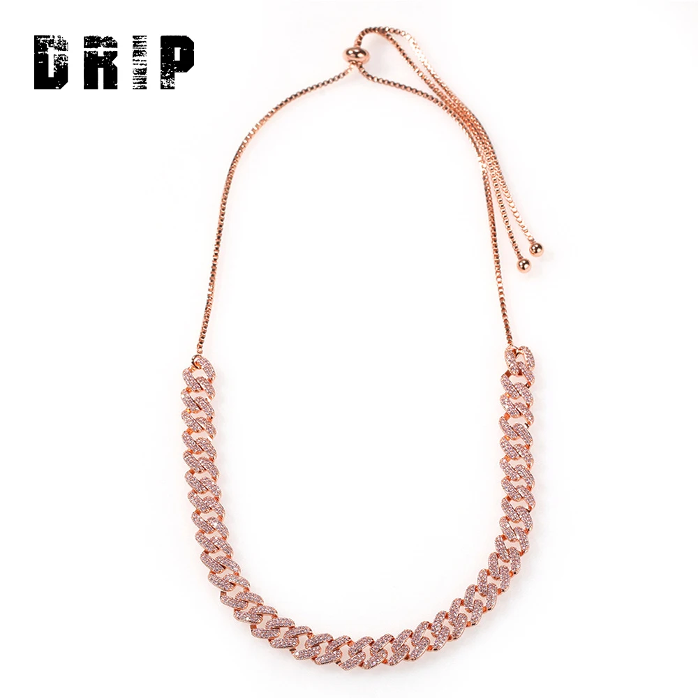 Модная Маленькая симпатичная кубинская цепочка в стиле капельного розового цвета для девочек nekclace, новейшая модель с кубическим цирконием, пикантная регулируемая длина, Женское Ожерелье-чокер, подарок