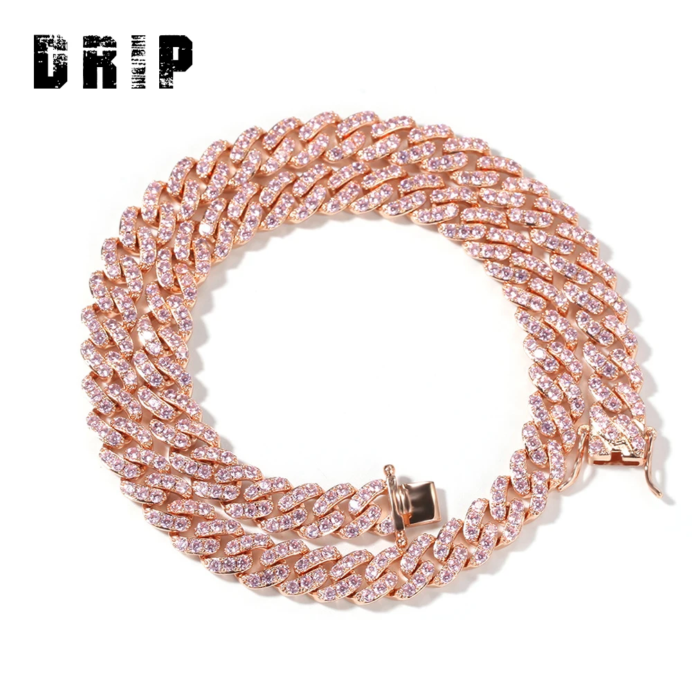 Хит продаж 9 мм Ожерелье-чокер со льдом из розового золота Медь кубинское звено полностью розовое кубическое циркониевое роскошное хип-хоп цепочка Ювелирные изделия