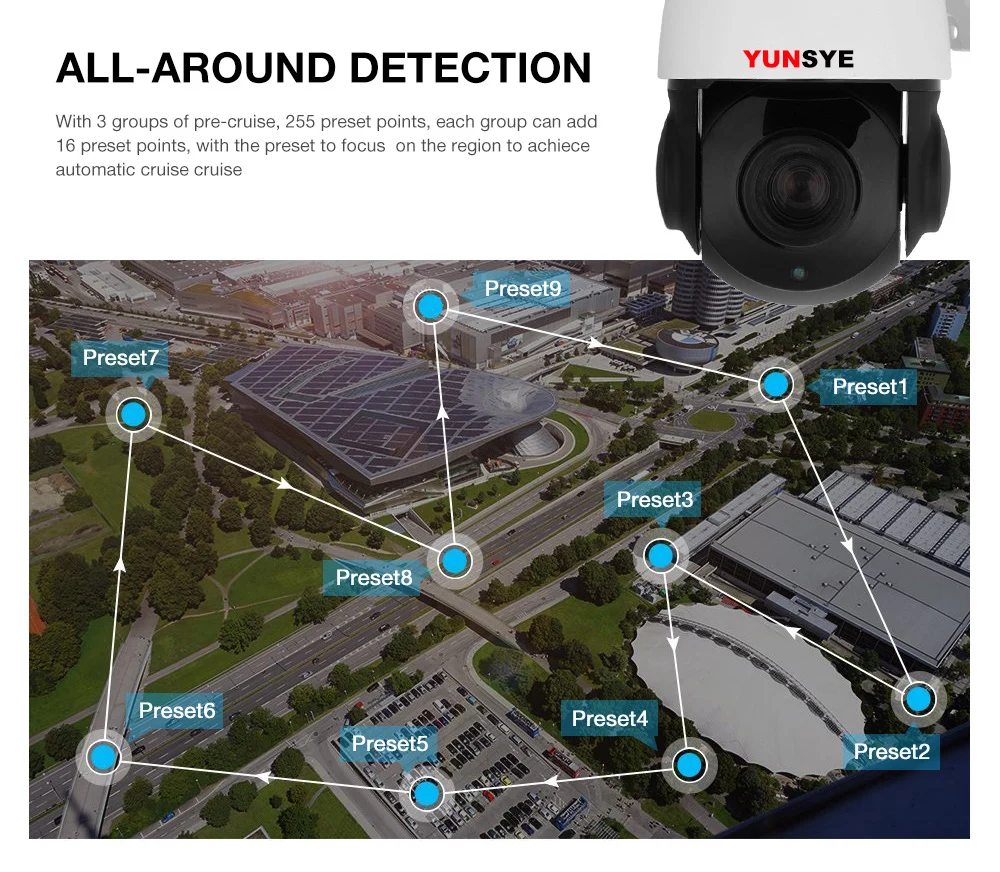 Особенности: * 4 дюймовый мини Размеры, водонепроницаемый IP66; * Разрешение 1080P, 2,0 MP, 1920x1080, 5MP 2592x1944 * F = 4,7 ~ 94 мм, 30X (20X оптический зум + 10X цифровой зум); * Поддержка ONVIF2.4, удобно подключить к третьей вечерние; * 6 шт. светодиодный светильник, эффективное расстояние до 60 м * Диапазон вращения: горизонтальный 0 ° ~ 360 ° неограниченное вращение; Вертикальный 0 ° ~ 90 ° * Скорость вращения: горизонтальная 60 °/с; Вертикальная 40 °/С * Поддерживает автоматическое сканирование на 360 градусов; Поддерживает две точки между круизом; * Поддержка заданной точки; Скорость вращения может быть скорректирована * Автоматический переключатель режима дня/ночи * IP66 водонепроницаемый металлический корпус * Вес: 3 кг * Функция PWM, интеллектуальное ИК-освещение и энергопотребление являются переменными, зависит от коэффициента масштабирования * Мобильный телефон: HiSee