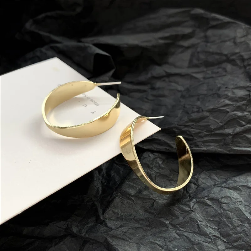Женские волнистые диски простые блестящие модные геометрические серьги