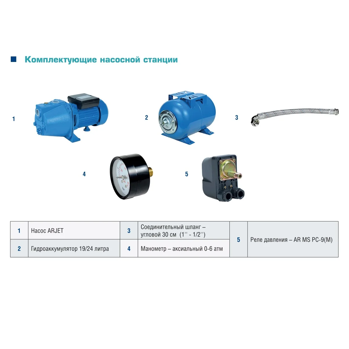 Автоматические насосные станции AquamotoR APS ARJET предназначены для перекачивания чистой, не содержащей абразивных частиц (песка) воды из колодцев и емкостей. Возможно применение станций для организации водоснабжения, повышения давления в водопроводных системах, для орошения садов и огородов. Корпуса насосов, которые установлены на насосные станции AquamotoR APS ARJET, выполнены из высококачественных марок чугуна. Рабочие колеса (крыльчатки) и диффузоры насосов изготовлены из высокопрочного технополимера, который не подвергается эффектам коррозии и кавитации. Ротора (валы) насосов сделаны из нержавеющей стали, которая не подвержена коррозии. Все насосы на станциях AquamotoR APS ARJET снабжены термозащитой, которая отключает насос при перегреве. Станции AquamotoR APS ARJET комплектуются горизонтальными гидроаккумуляторами, объемом 24 литра, с мембраной из натурального каучука. На станциях установлены реле давления, которые производят автоматическое включение и отключение насоса. Для удобства пользователя на станциях смонтированы манометры. Все станции AquamotoR APS ARJET комплектуются электрическим кабелем с вилкой. Достаточно включить станцию в розетку и она начнет работать.