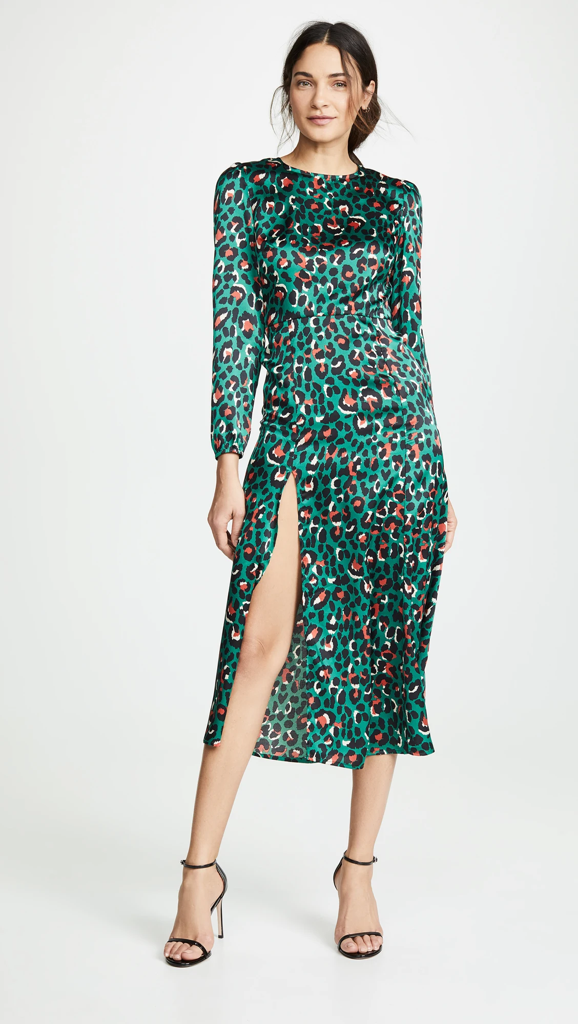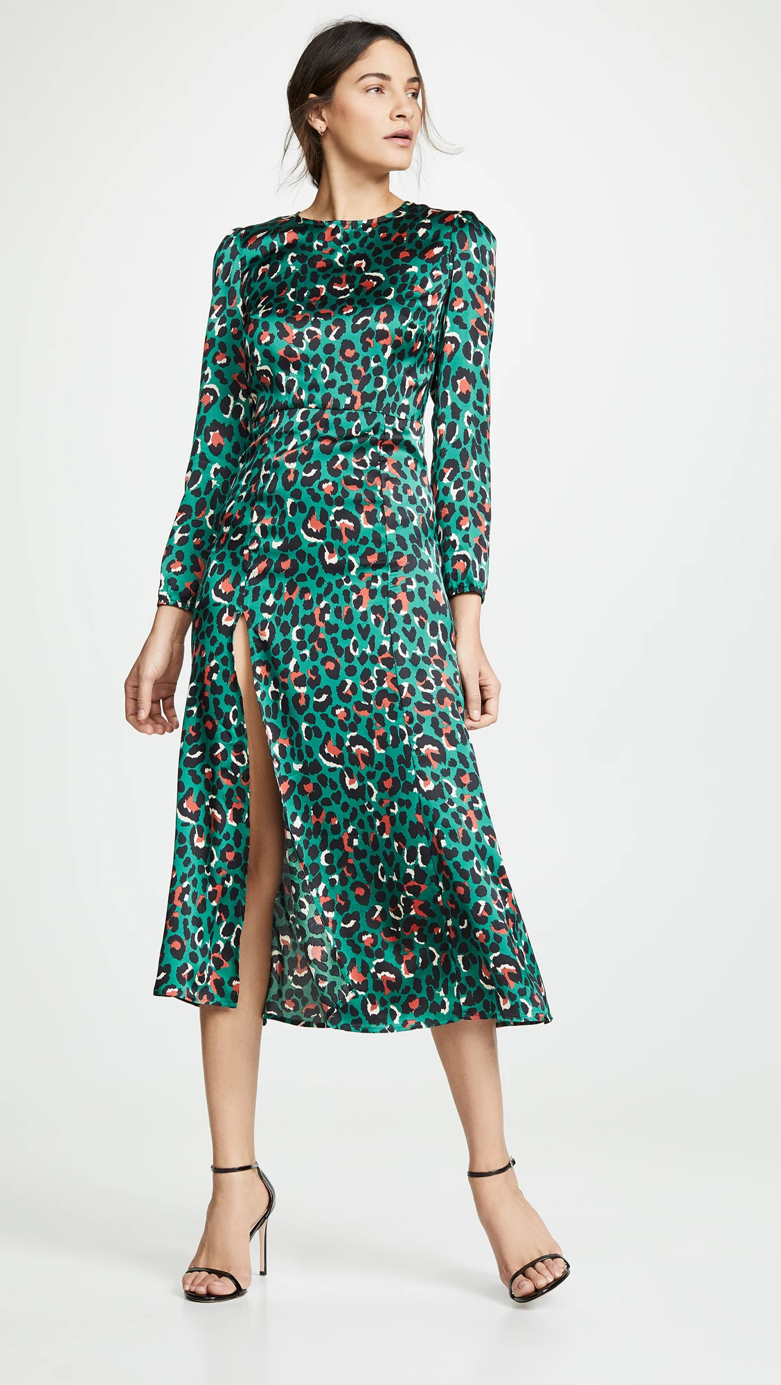 Oumea модная летняя женская обувь; Зеленого цвета с леопардовым принтом, с открытой спиной с длинным рукавом платье вечерние высокий разрез женские макси платье элегантное платье