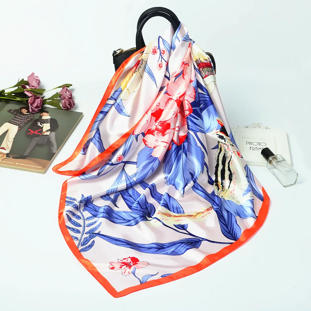 90*90 см Шелковый Атласный шейный шарф для женщин квадратные шали и обертывания модная женская сумка шарфы цветочный принт платок хиджаб Scaves 2020