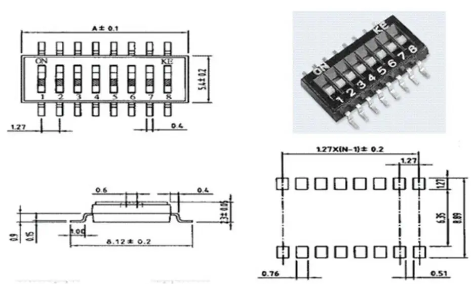 5 шт. x SMD SMT скользящий переключатель типа 1P 2P 3P 4P 5P 6P 8P 10P 1,27 мм позиционный способ DIP черный шаг тумблер черный оснастка переключатель