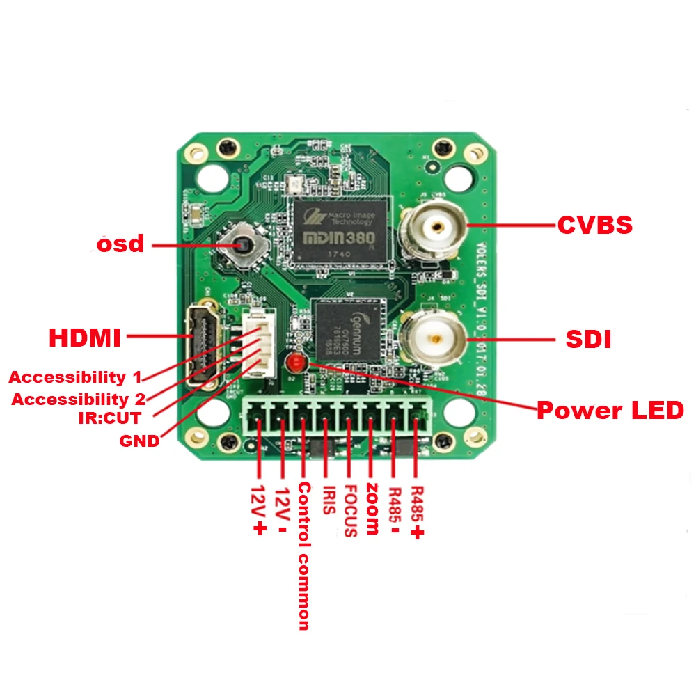 Многофункциональная плата управления кодированием SDI / HDMI / CVBS специально разработана для цифрового модуля движения высокой четкости SONY FCB. Подключается к кодовой плате через интерфейс LVDS и одновременно выводит видеосигналы 3G-SDI, HDMI и CVBS без необходимости создания любых настроек движения. Может автоматически распознавать сигналы высокой четкости, а также поддерживает другие брендовые движения по протокол SONY VISCA.