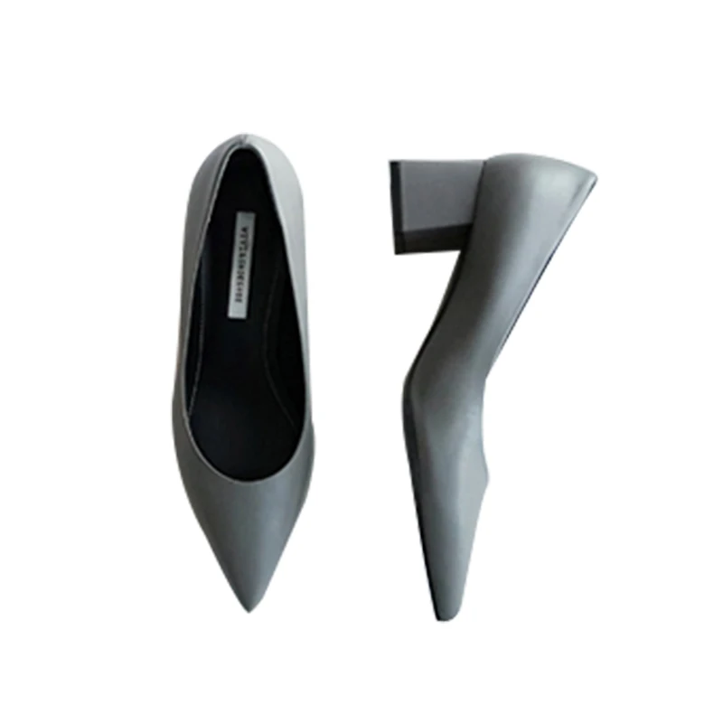 Летние женские туфли на среднем каблуке кожаные туфли на высоком толстом каблуке с острым закрытым носком рабочая обувь каблук 4 см 6 см 33 42US $49,90 /