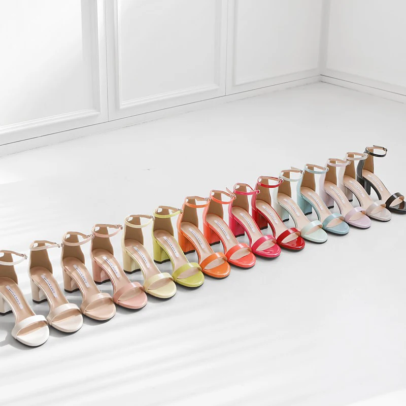 Летние модные сандалии обувь на среднем каблуке босоножки на высоком каблуке с открытым носком и пряжкой размер 33-42US $53,00 /