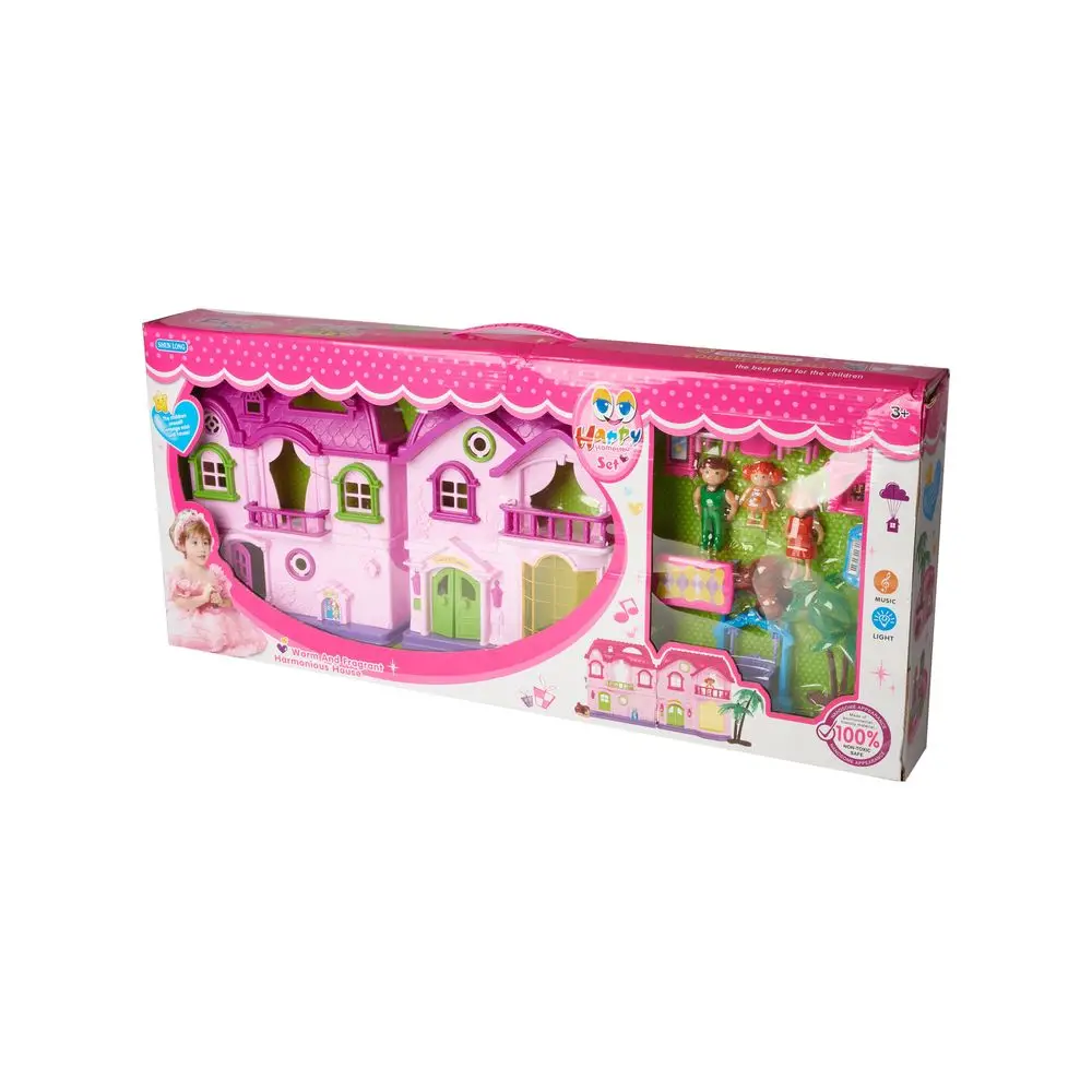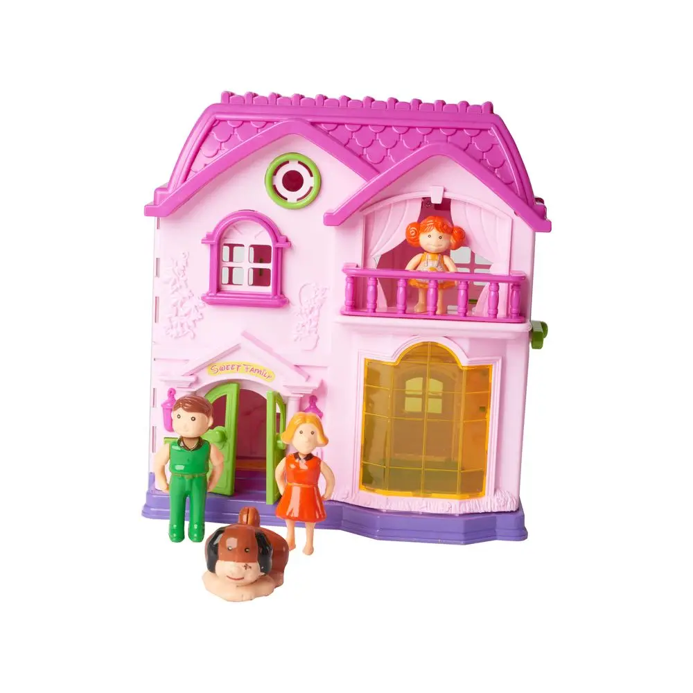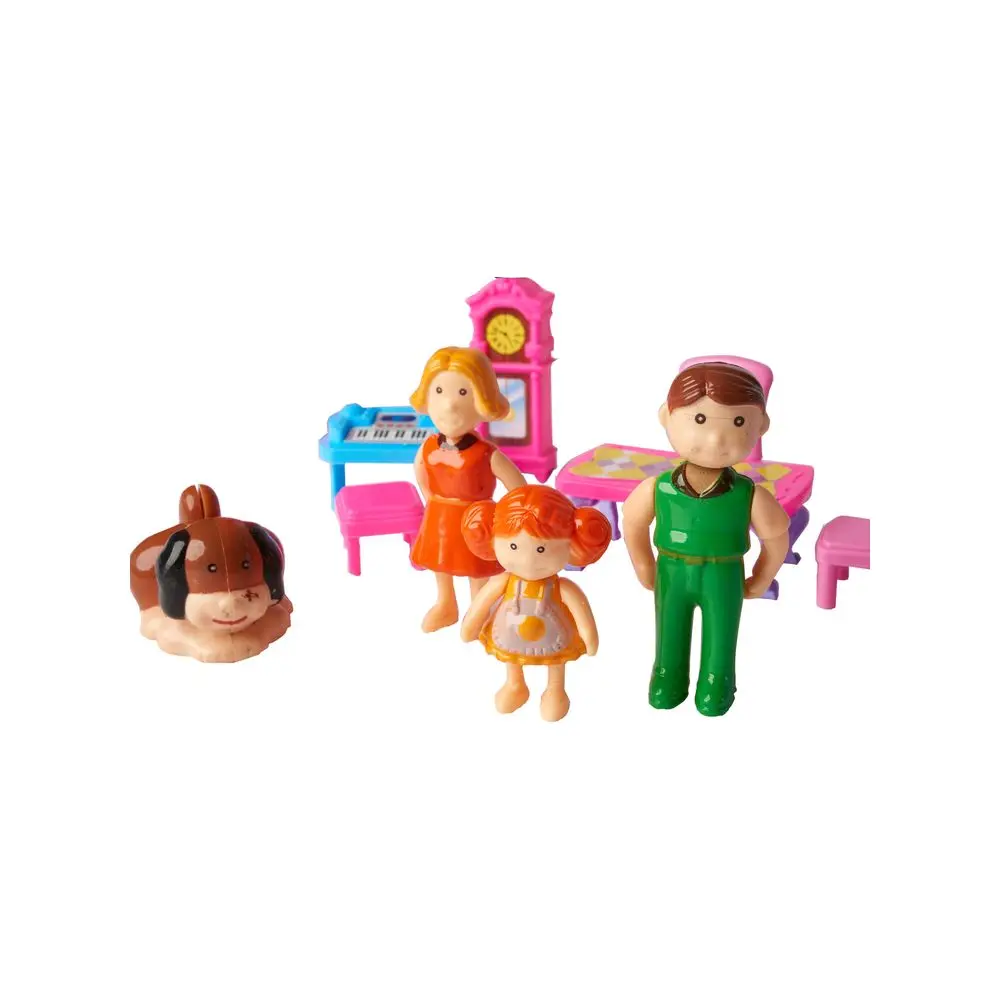 В наборе имеются фигурки трех членов семьи - папы, мамы и дочки, также у них есть и собака. Сам дом имеет удобную форму книжки и открывается на 180 градусов, что очень удобно для игры сразу нескольких человек.