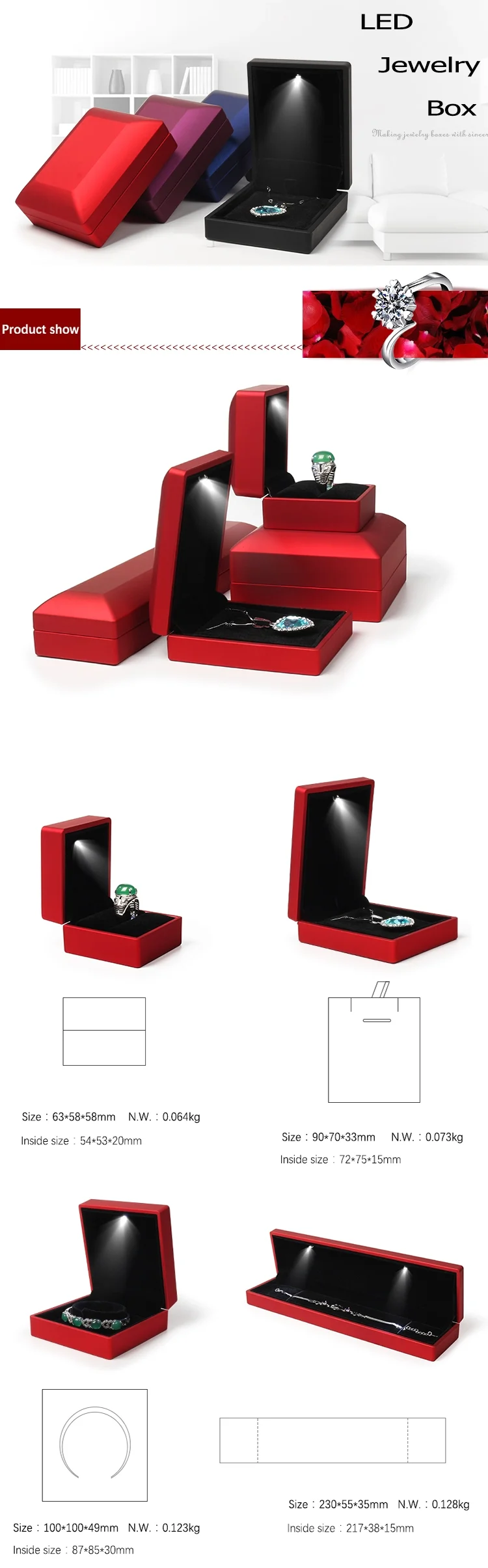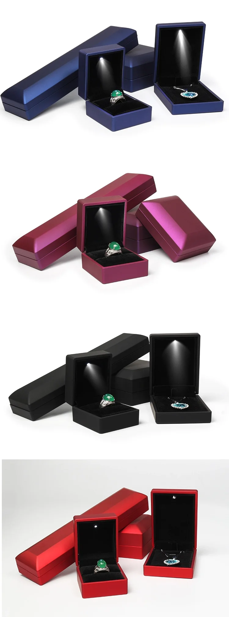 Описание продукта коробка ювелирных изделий со светодиодным светильник для помолвки Свадебные кольца коробка фестиваль День рождения Ювелирное кольцо ожерелье дисплей подарочные коробки
