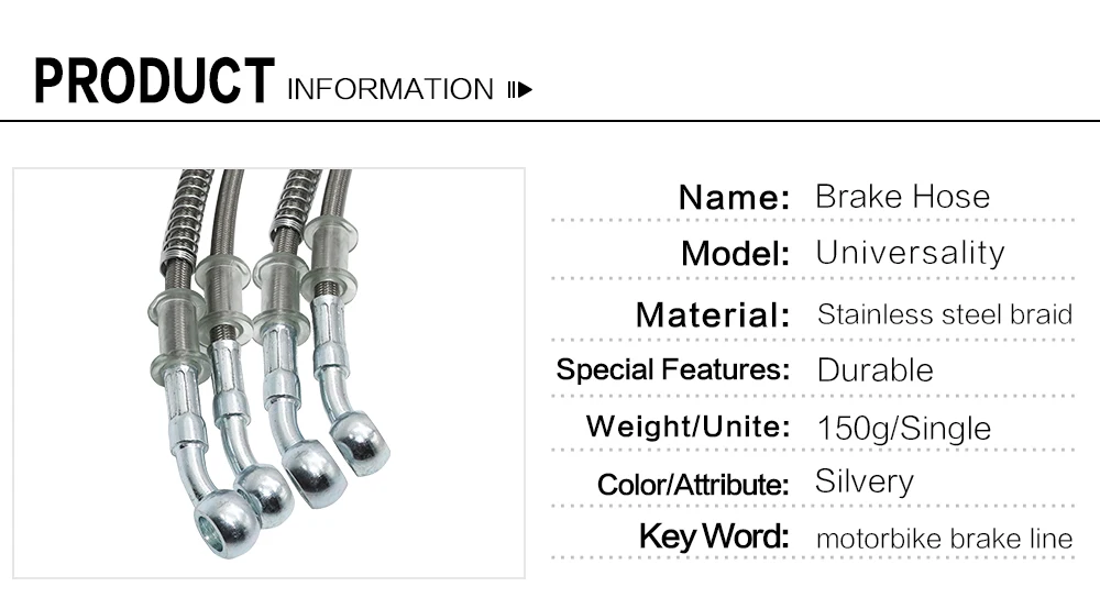Название: тормозной шланг, тормозной шланг, тормозной шланг! Описание: Этот тормозной Масляный шланг является невоспламеняющимся с высоким качеством класса и низкой проницаемостью. Чрезвычайно низкие фрикционные свойства и широкий диапазон рабочих температур (-70) до (+ 265). Этот просты в установке под воздействием тормозной жидкости шланг линии Прямая замена оригинальной тормозные трубки. Характеристики продукта: стальная проволочная оплетка высокой плотности, высокая термостойкость, высокая устойчивость к давлению, стойкость к окислению на обоих концах, подходит для замены или модификации всех размеров и смещения мотоциклов, электрических мотоциклов, автомобилей Длина изделия: 39, 45, 50, 55, 60, 65, 70, 75, 80, 85, 90, 95, 100, 110, 120, 130, 140, 150, 180, 190, 200 см каждая цена спецификации отличается (Пожалуйста, обратите внимание перед покупкой) Диаметр отверстия для соединения на обоих концах составляет 10 мм (M10), шарнир имеет угол 28 изгибов Материал изделия: внутренний слой-нейлоновая трубка, средний слой-проволока из нержавеющей стали, внешний слой-внешний слой из ПУ Технические характеристики изделия: внутренний диаметр 3 мм, наружный диаметр 7,5 мм Примечание: Если вам нужно купить другие модели длины, пожалуйста, свяжитесь со службой поддержки клиентов, мы адаптируем их для вас, а затем разместите заказ после подтверждения, спасибо