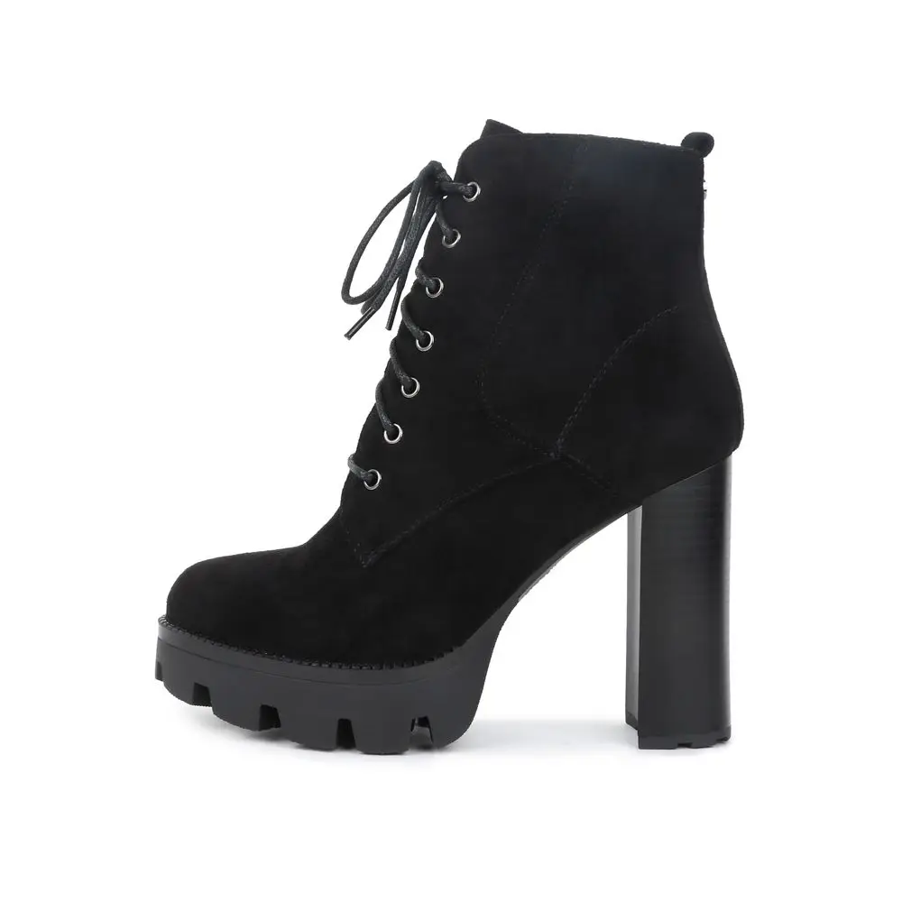 Женские теплые сапоги до колена FEDONAS черные длинные на платформе и высоких