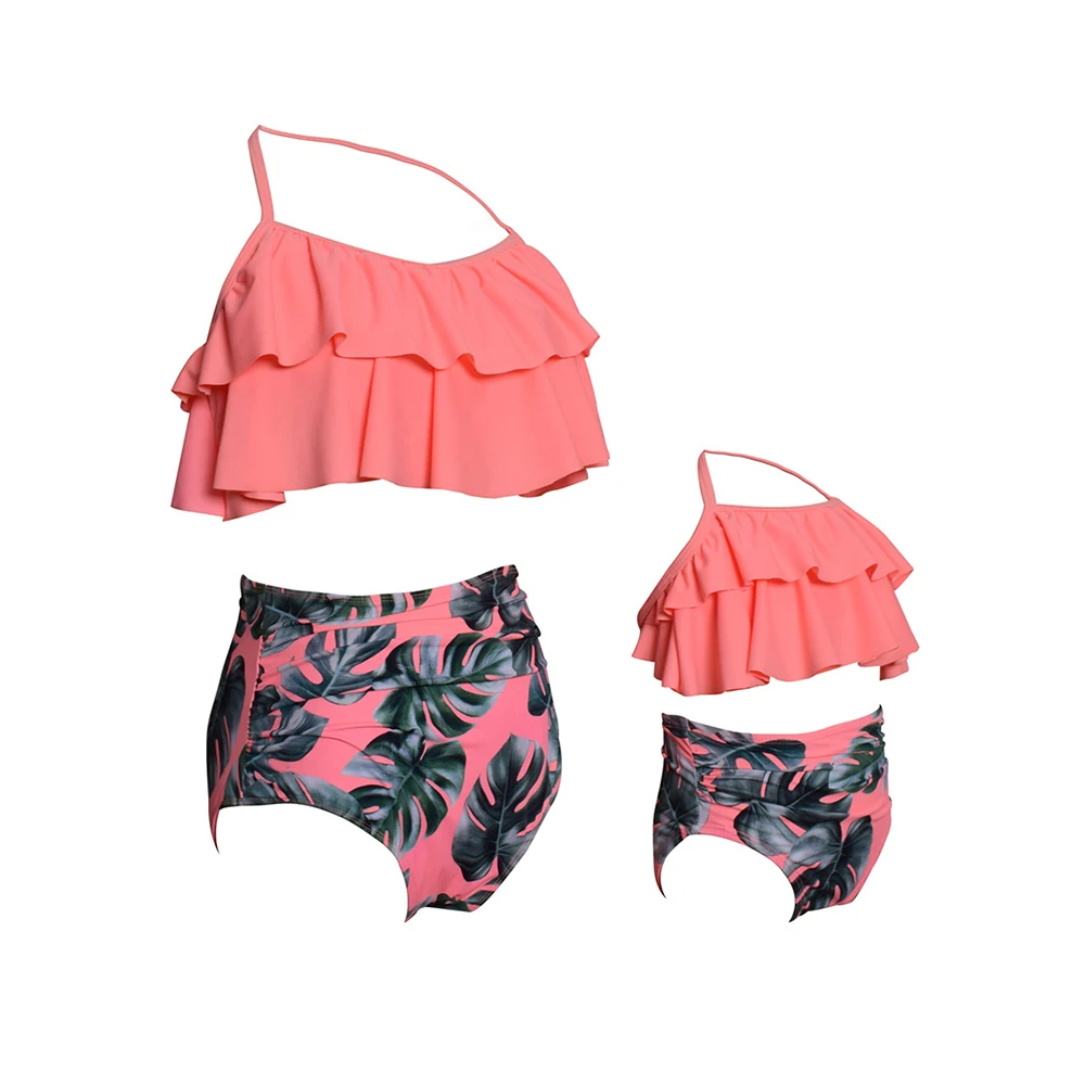 Сексуальный купальник на бретельках, пуш-ап, с высокой талией, с оборками, для родителей и Детские бикини, женский купальник, купальный костюм, пляжный Maillot de bain