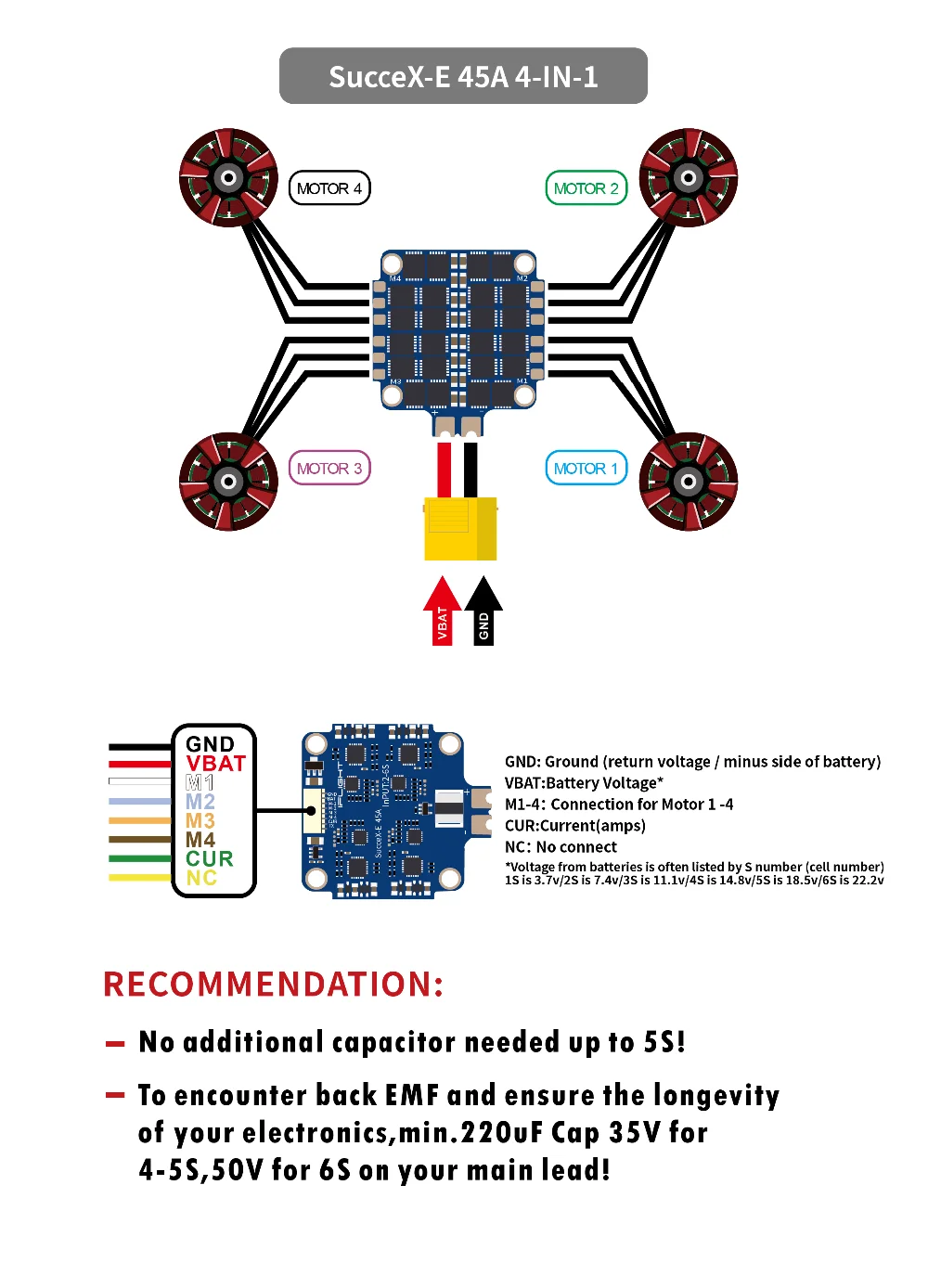 Iplight sucex-E 45A 2-6S BLHeli_S 4-в-1 ESC 40*43 мм Поддержка DShot DShot150/300/600/MultiShot/ OneShot для FPV racing drone kit