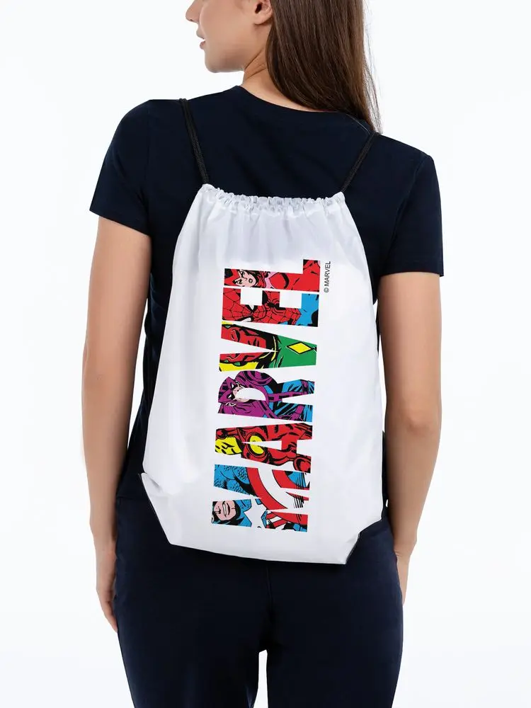 Марвел- легенда нашего времени. Одного названия достаточно, чтобы узнать вселенную крутых героев. Сила Человеческого духа в масштабных героических историях- могущественные супергерои и их враги в вечном противостоянии Добра и Зла! Контраст белого рюкзака и яркого названия. Рюкзак удобный и компактный. Прочный материал полиэстер выдерживает нагрузку, легко затягивается и надевается на плечи, ваши руки свободны. Длина лямок регулируется по желанию, такой рюкзак подойдет для любого роста. Идеальный размер 34х45 см для формы, сменной обуви, легких покупок. Рекомендуем бережную стирку при температуре не выше 30 градусов, гладить можно в деликатном режиме с изнанки, чтобы красивый принт долго вас радовал.