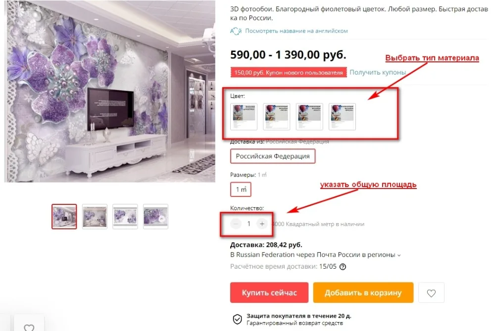 Размеры фотообоев