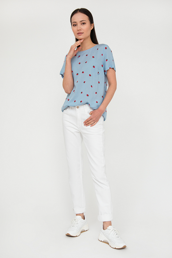 Женская хлопковая блузка с длинным рукавом и V образным вырезом|Блузки| |