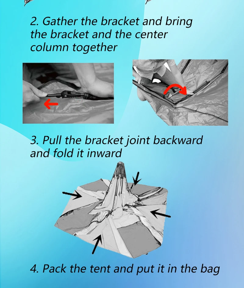 Тип: палатка для 3 - 4 человек Название продукта: Семейный тент Цвет: роскошное золото/борланд/бирюзовый Слоев: двойной Flysheet:150D K-oxford серебряное покрытие, PU 1500 мм, тиснение Характеристики: Водонепроницаемость, защита от УФ-лучей Применение: для использования на природе, Отдых на природе Размеры: 230x230x140cm Упаковка Размеры: 75X18X18cm Внутренняя часть: 190T полиэстер дышащая ткань + сетка Пол: 210D прочный Оксфорд, PU 1500 мм Рама: Стекловолоконный полюс, автоматическая система Вес нетто: 5 кг Рекомендуемое Использование: парк, пляж, рыбалка, спортивные мероприятия, внутренний двор...